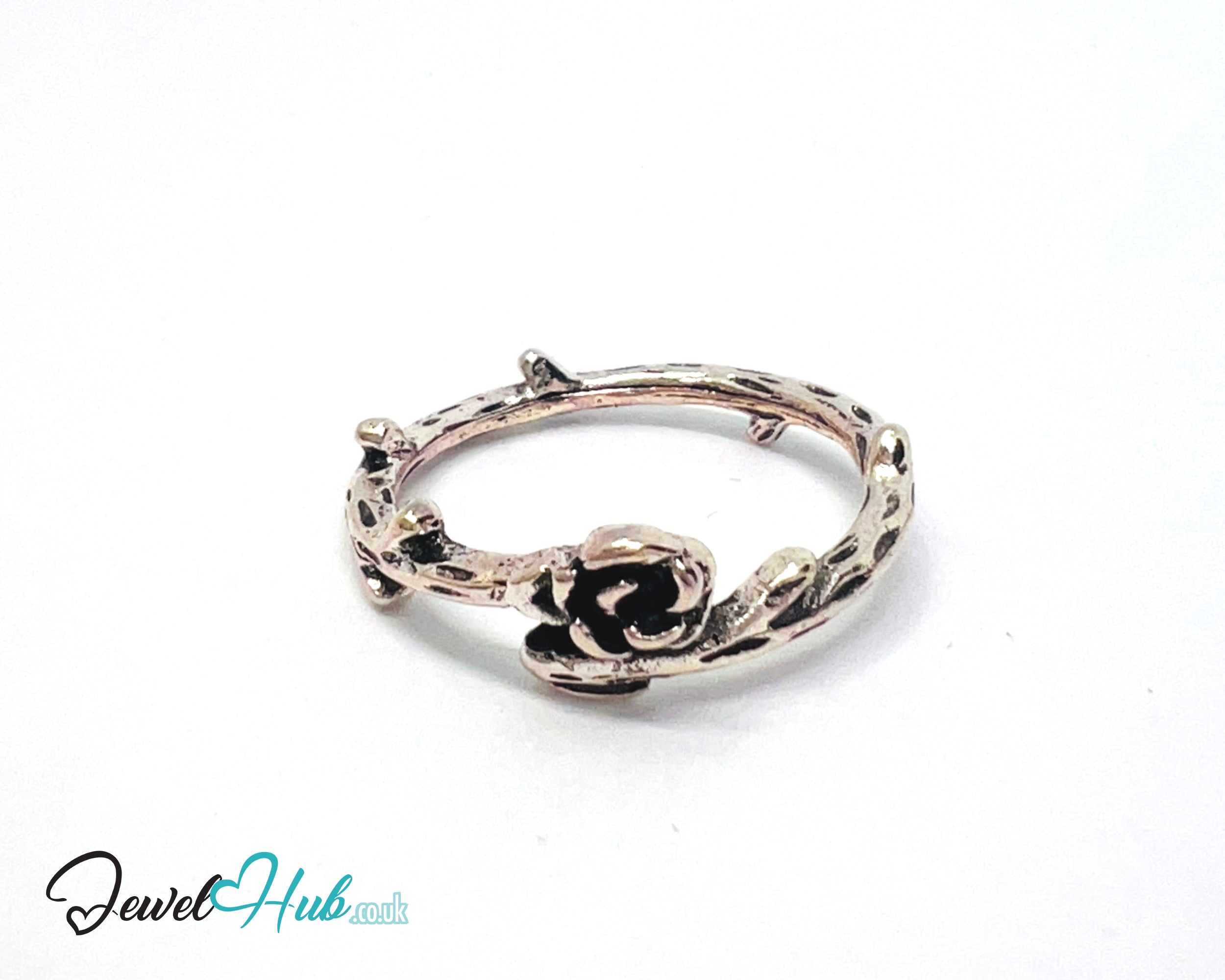⛓️ Rose-Tone Floral Rebel Ring – Zinc Alloy · UK M · US 6.5 · Sculptural Vine & Bloom Motif · Metallic Rosy Finish