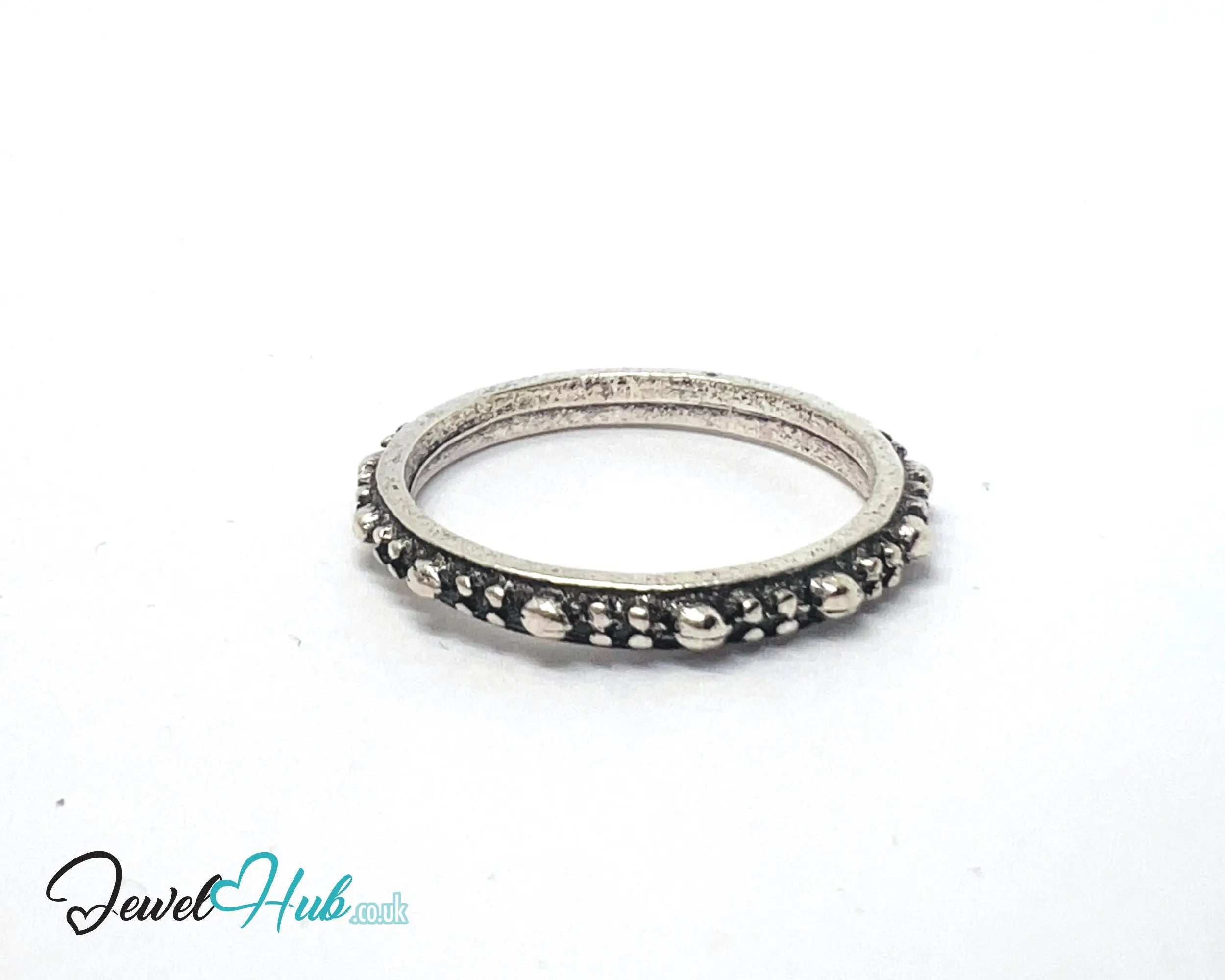 ⛓️ Silver Dot Grid Ring – Zinc Alloy · UK M · US 6.5 · Raised Texture Motif · Brushed Silver Finish