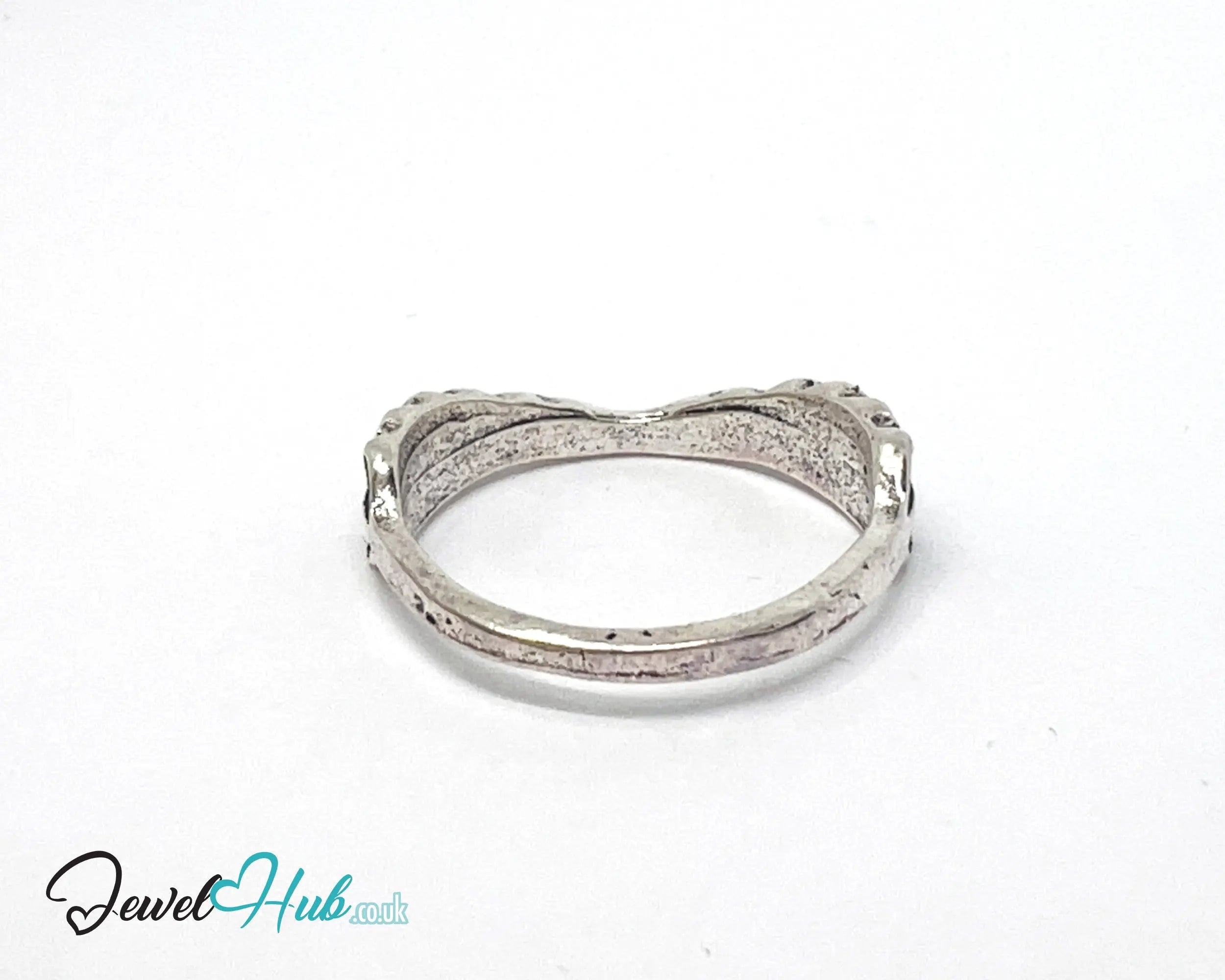 ⛓️ Silver Feather Band Ring – Zinc Alloy · UK N · US 7 · Sculptural Wing Motif · Brushed Silver Finish