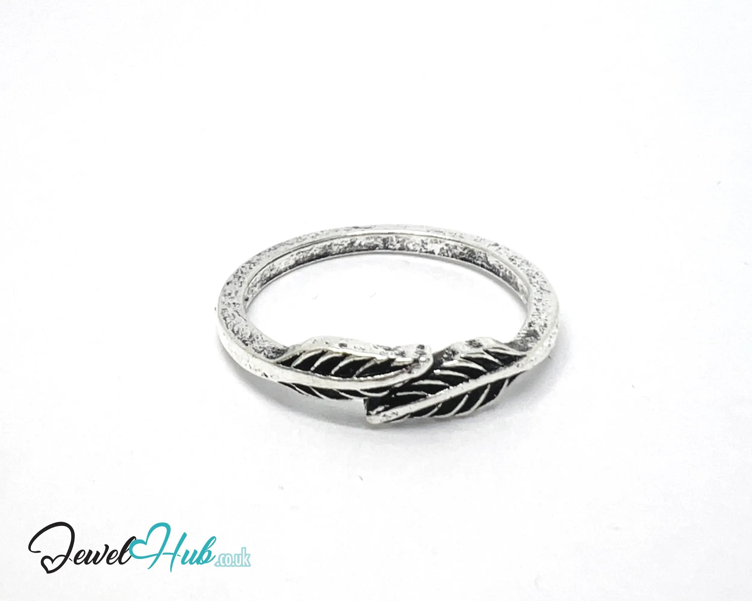⛓️ Silver Feather Trace Ring – Zinc Alloy · UK O · US 7.5 · Sculptural Wing Motif · Brushed Silver Finish
