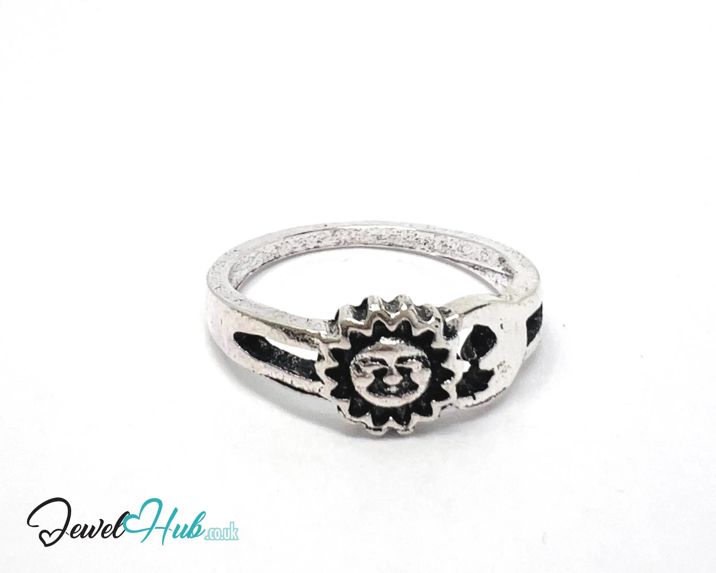 ⛓️ Silver Sun Moon Ring – Zinc Alloy · UK N · US 7 · Celestial Dual Motif · Brushed Silver Finish