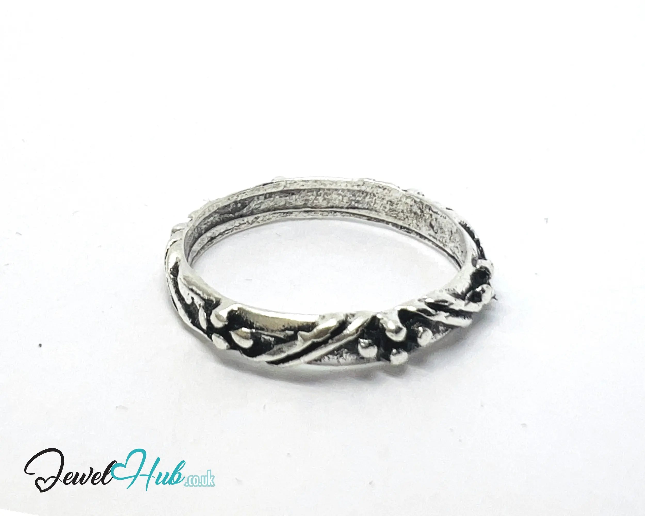 ⛓️ Silver Vine Scroll Ring – Zinc Alloy · UK N · US 7 · Engraved Nature Motif · Brushed Silver Finish