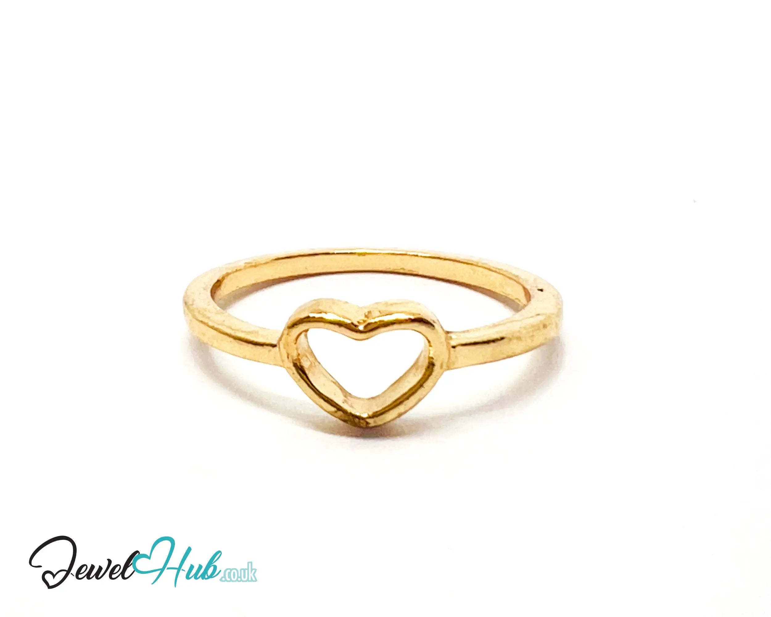 ❤️ Gold Open Heart Ring – Zinc Alloy · UK N · US 7 · Sculptural Heart Motif · Polished Gold Finish