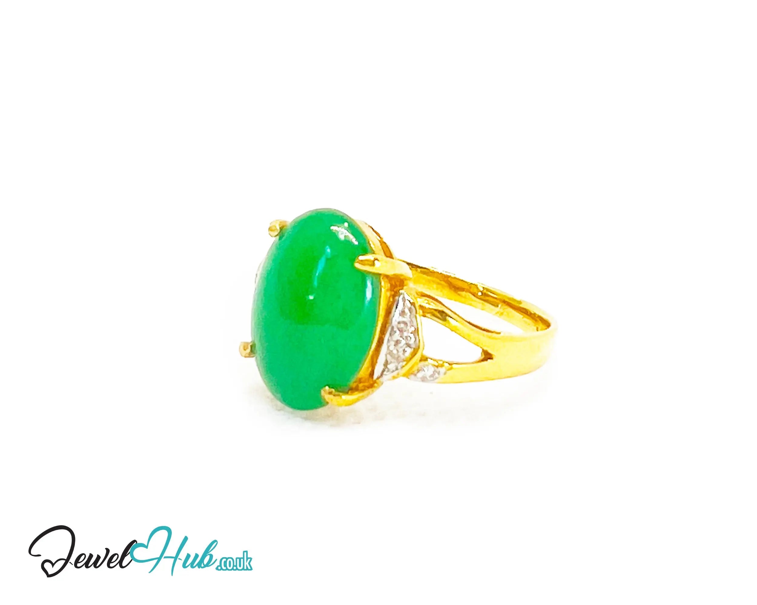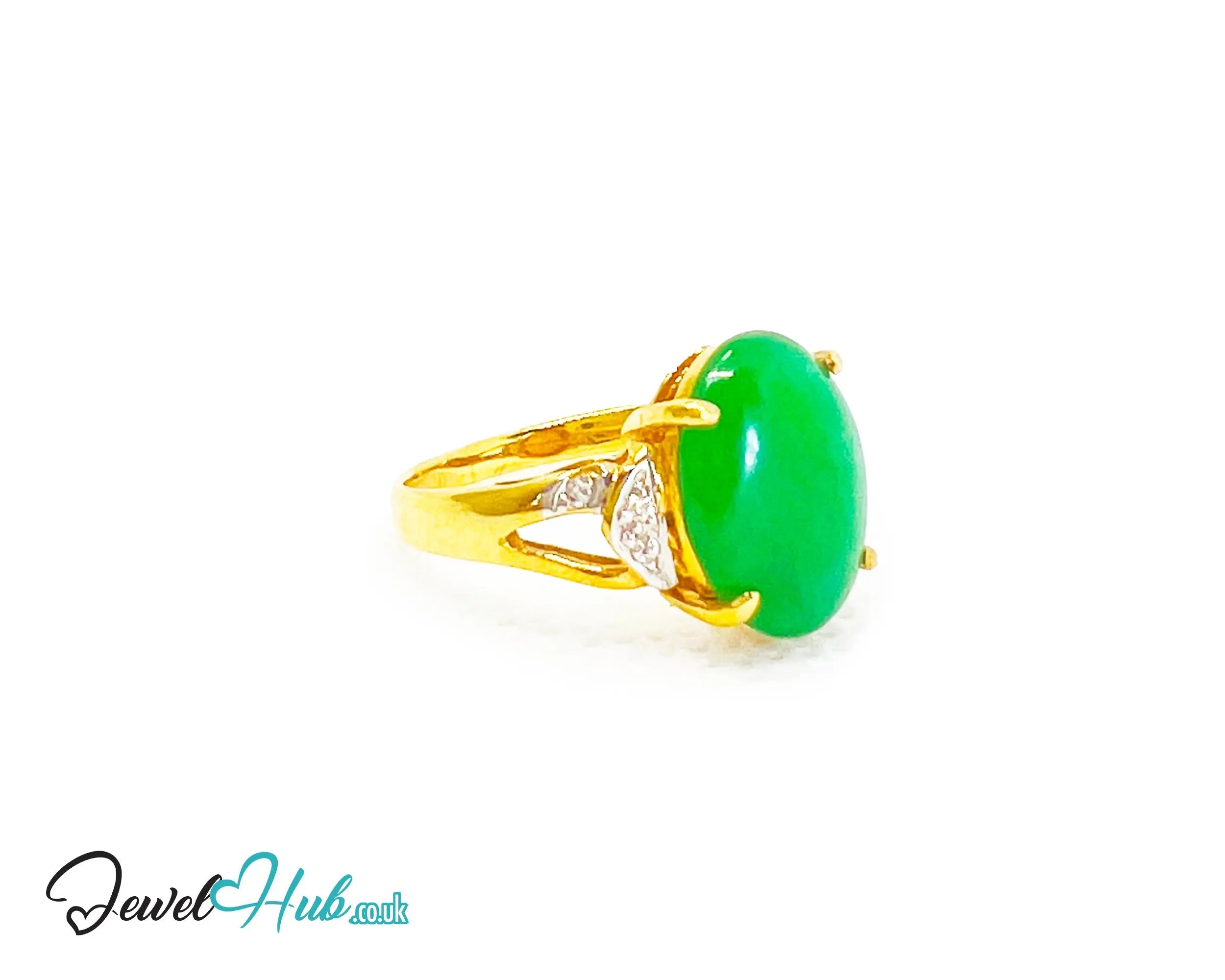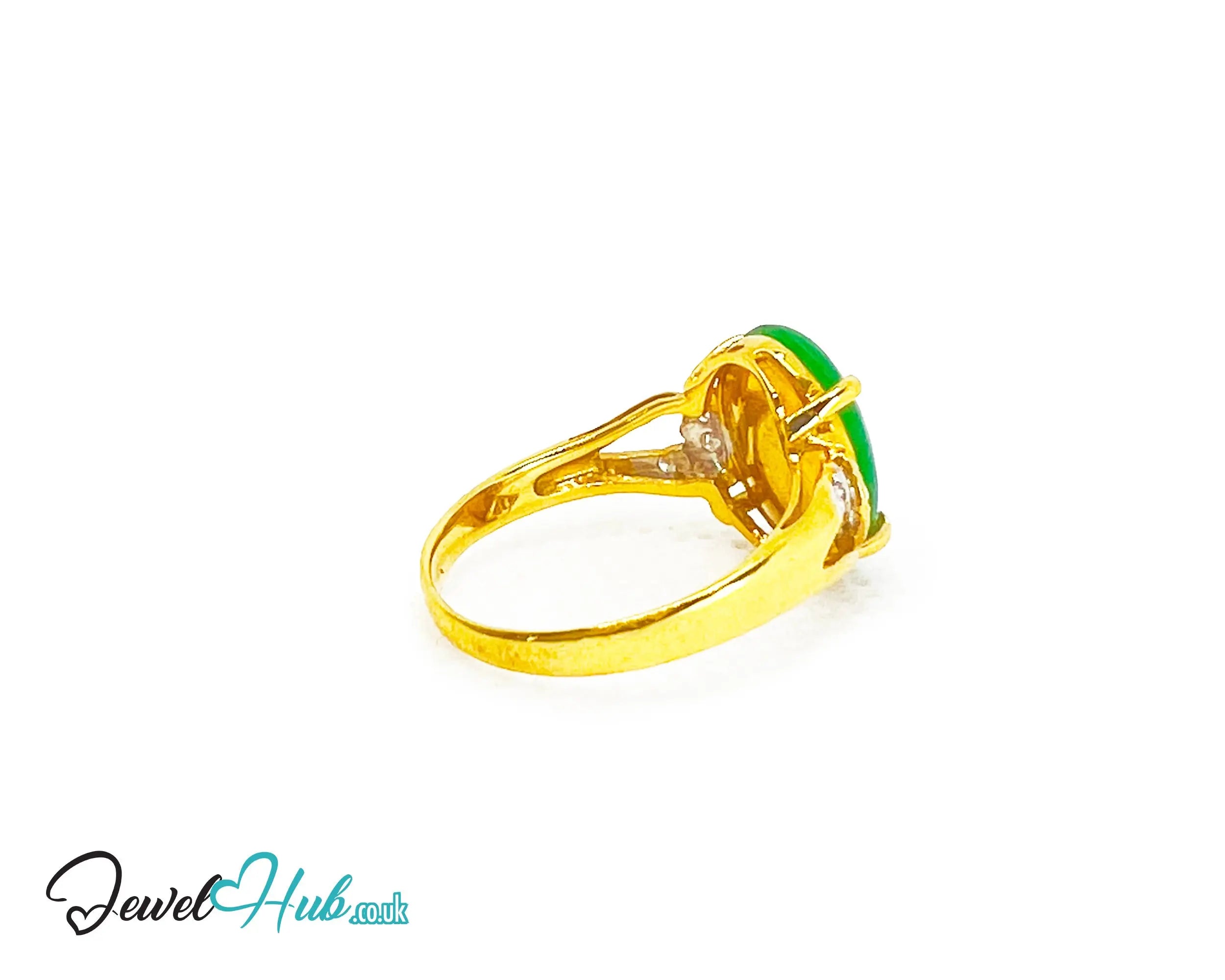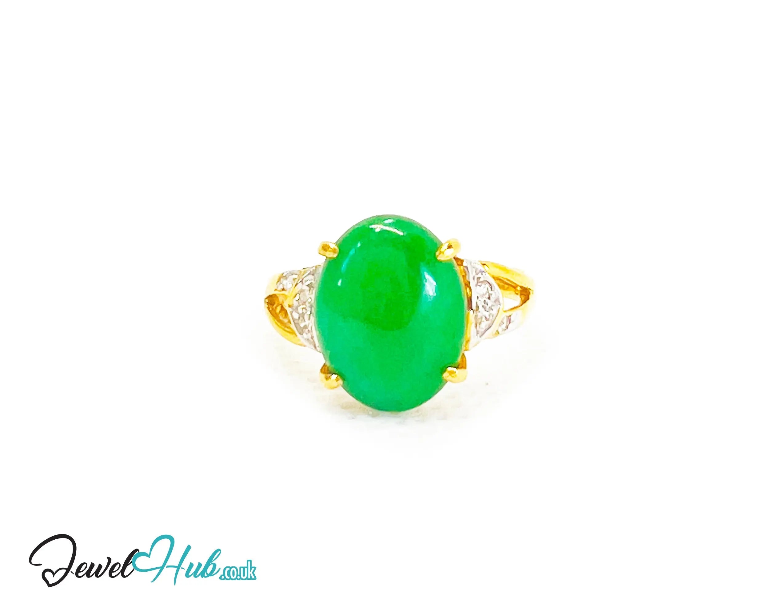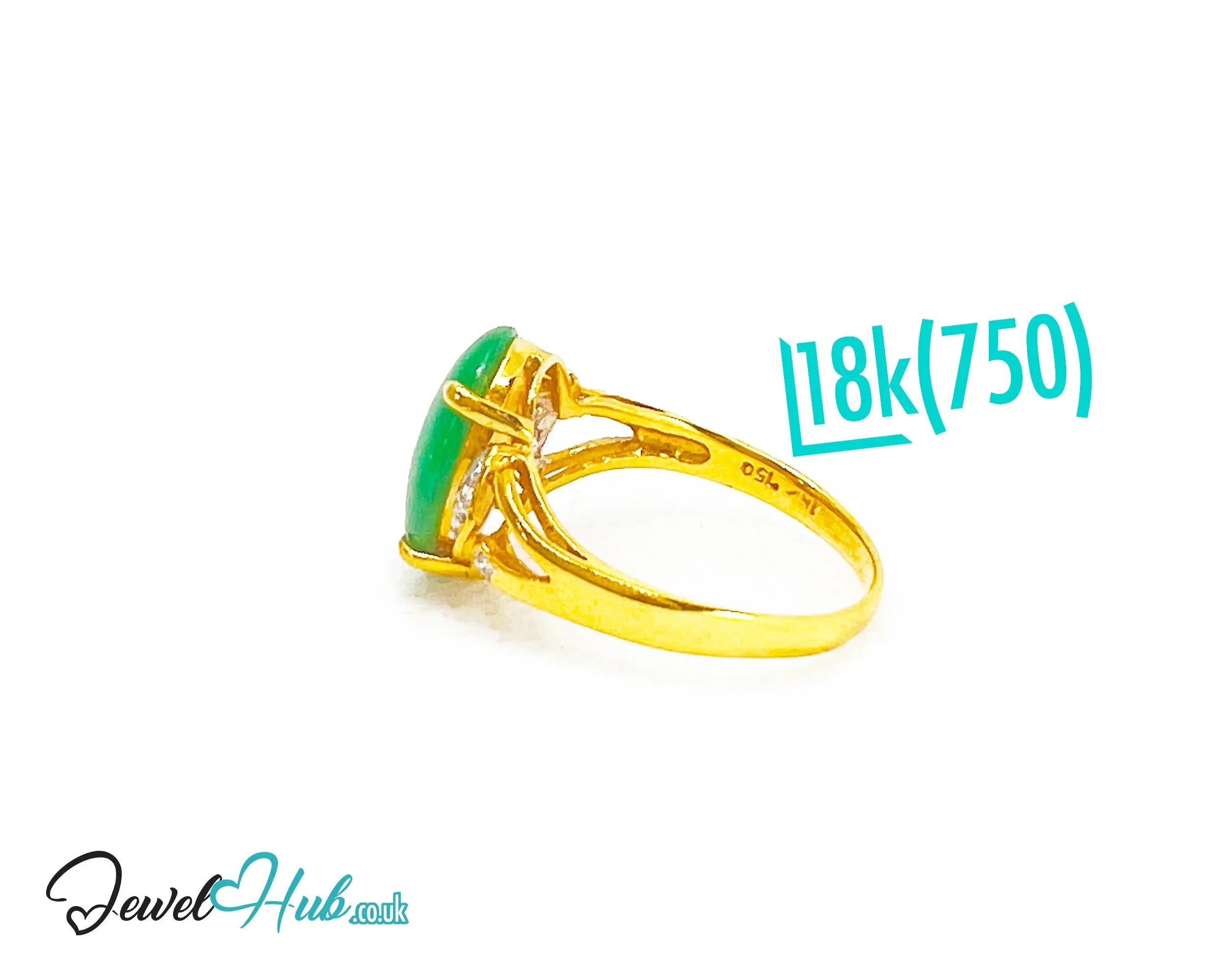 18k Gold Jade & Diamond Ring – Hallmarked (750) | UK N US 7 | Imperial Bloom