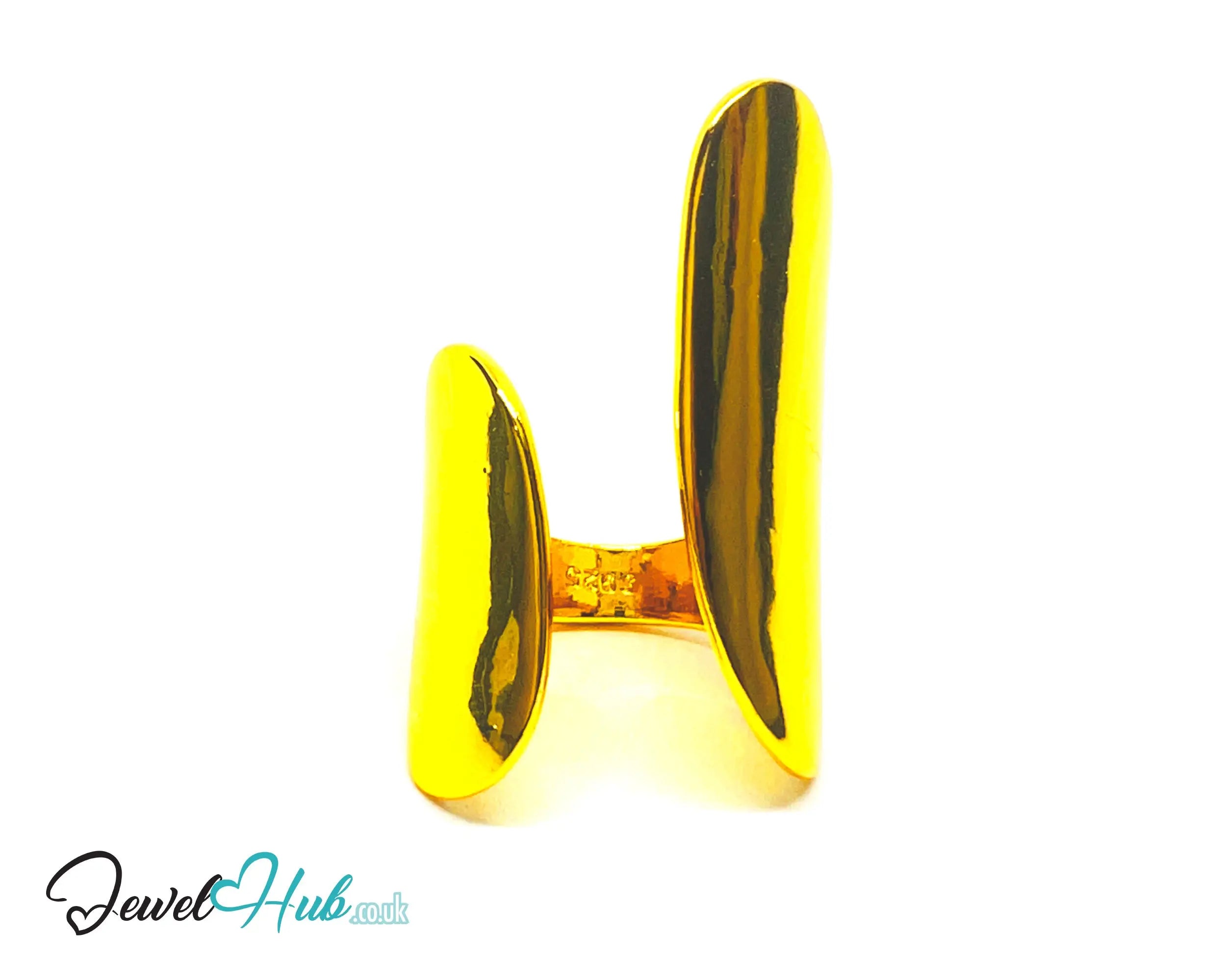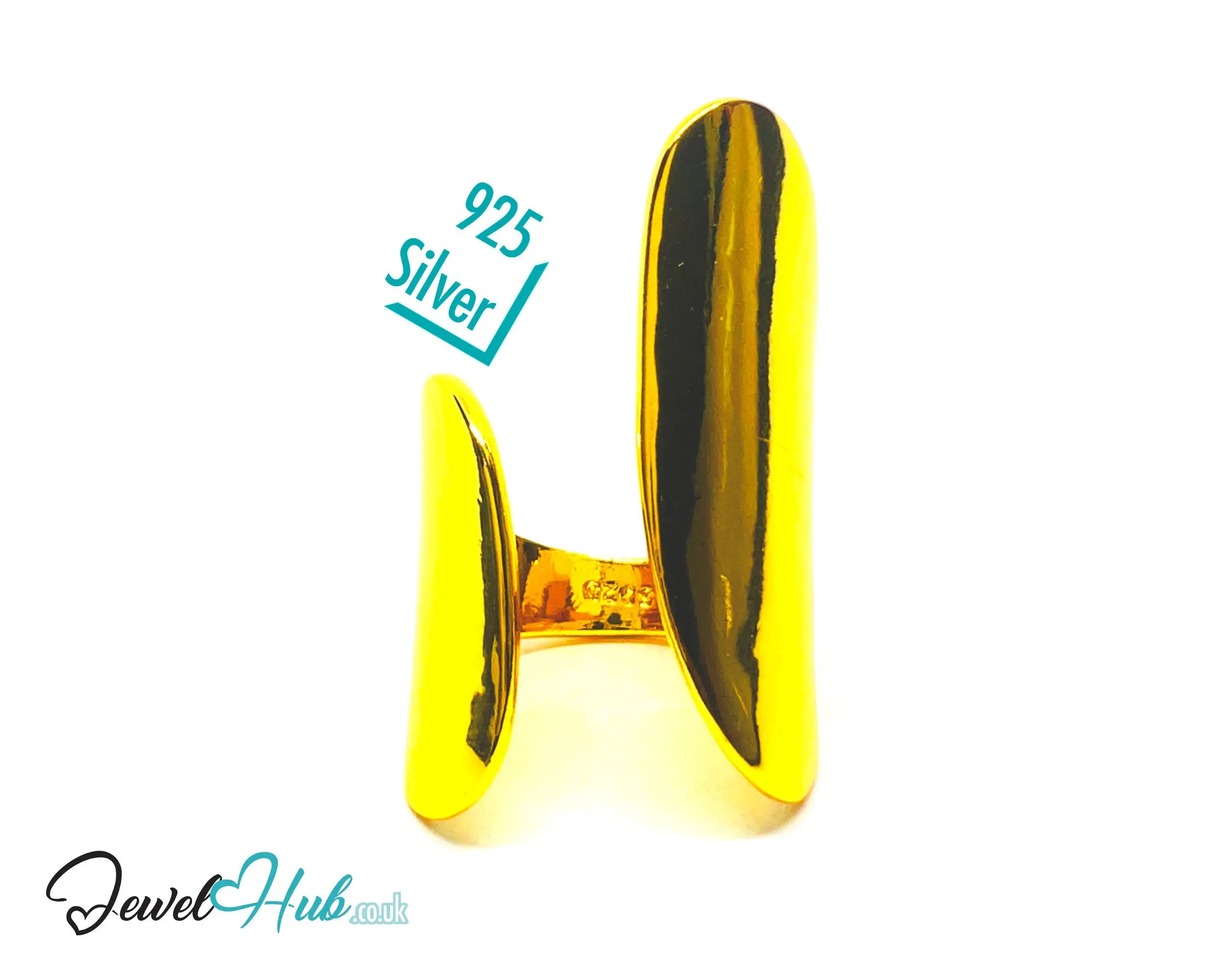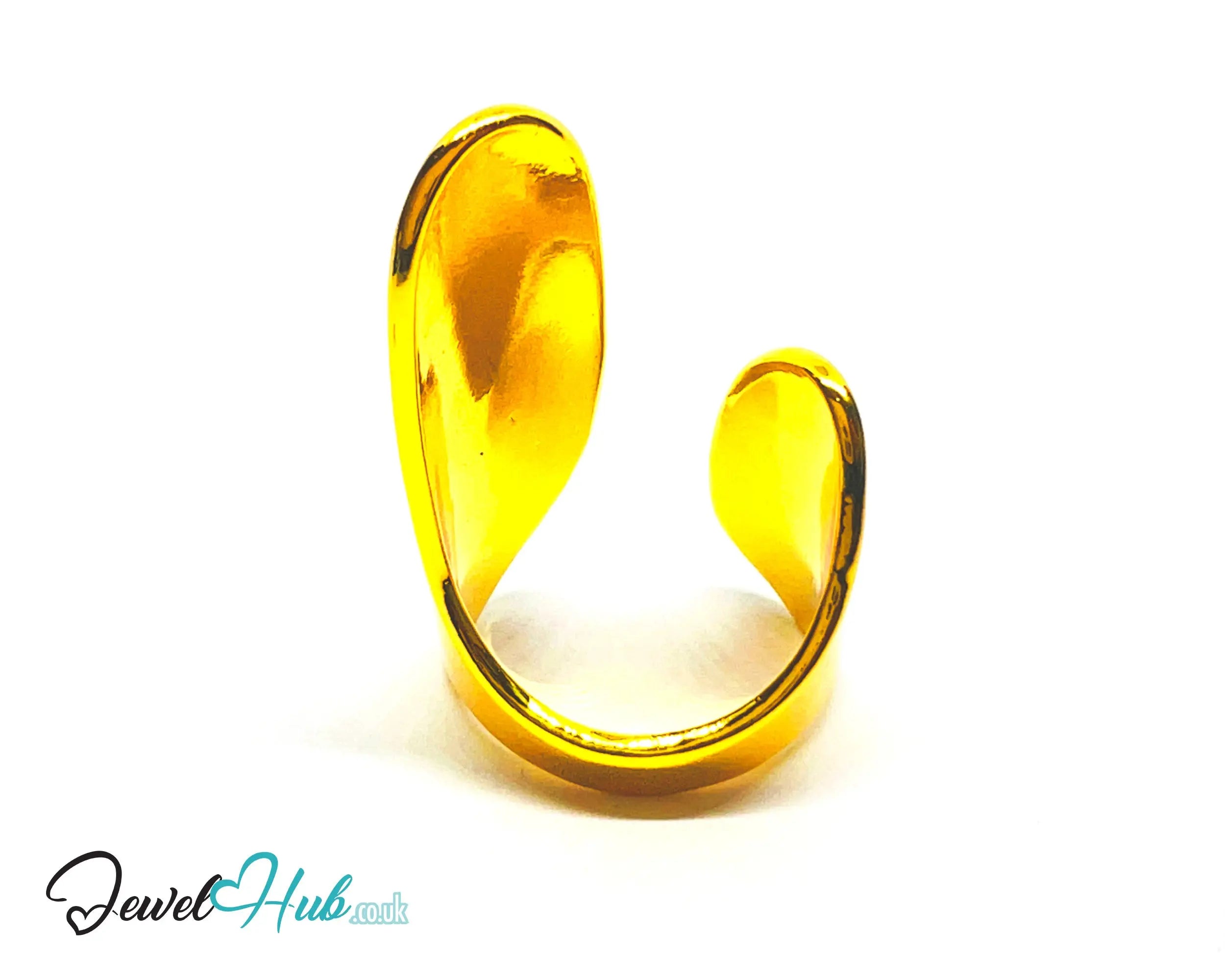 This hallmarked 925 sterling silver ring blends sculptural elegance with everyday versatility. Featuring a distinctive wavy silhouette, it showcases a polished gold-toned center framed by smooth silver edges—creating a golden silvery contrast that catches the light from every angle. With a weight of 6.3 grams and an adjustable fit from UK sizes N to P, it’s designed for comfort without compromising on style. Whether worn solo or stacked, this piece adds a refined edge to any look.