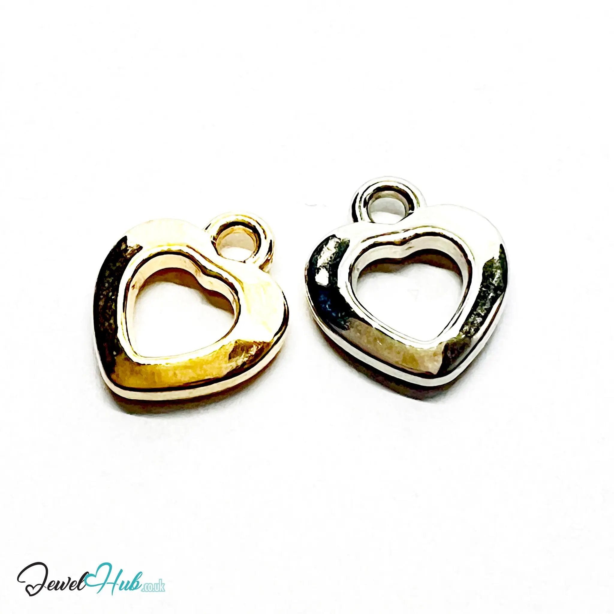 These charms feature a bold heart outline with a hollow center, crafted from Zinc Alloy and finished in either gold or silver plating. Their smooth, reflective surface and compact form make them ideal for layering, gifting, or minimalist styling. Available in necklace or bracelet formats: