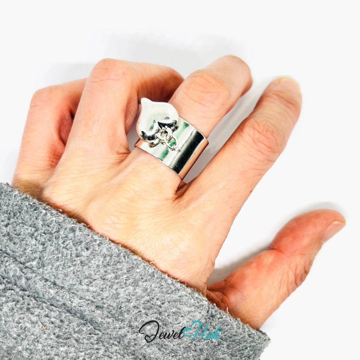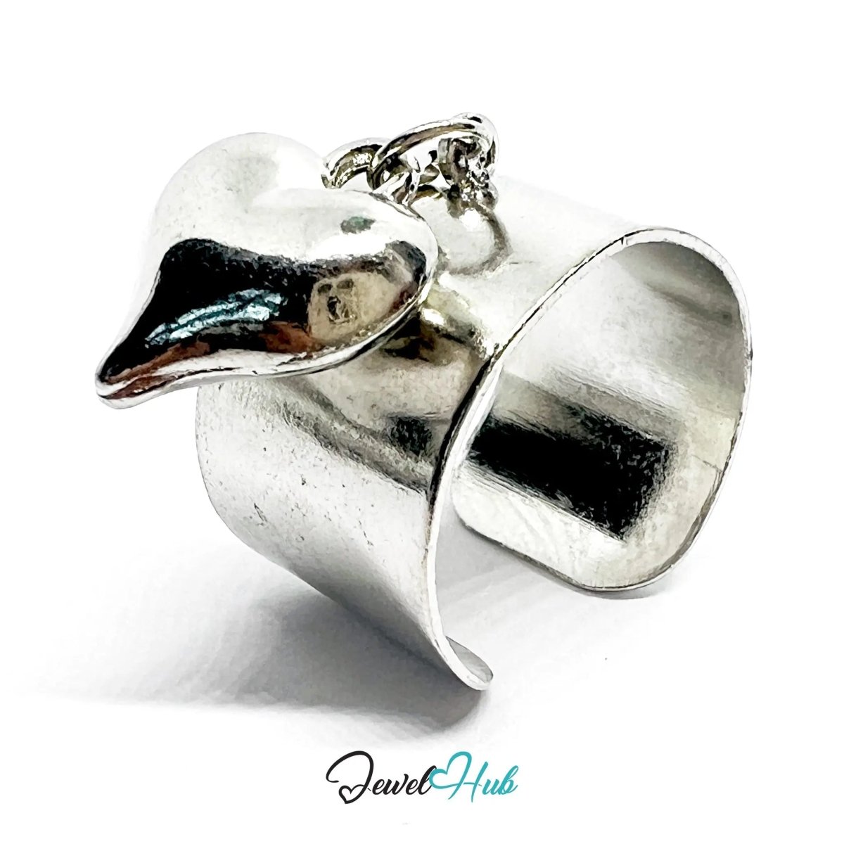 A polished zinc alloy charm ring featuring a softly reflective heart pendant that moves gently with your gestures. Adjustable MNOPQ fit. Lightweight, expressive, and easy for everyday wear.