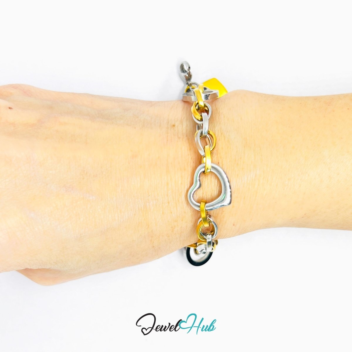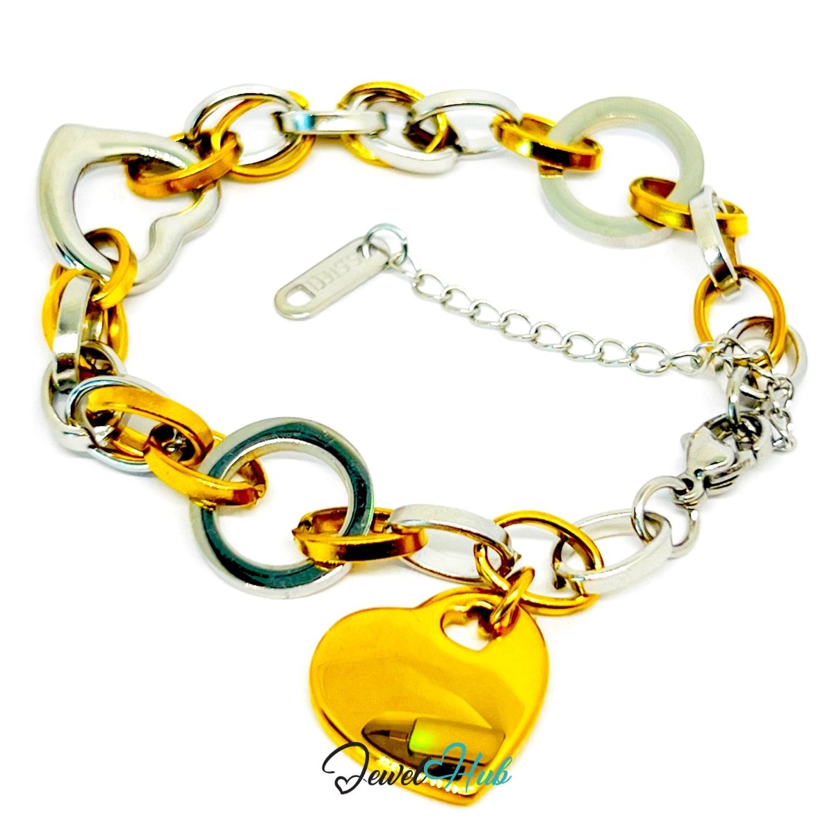 DuoTone 316L Stainless Steel Bracelet – Heart Accent Link Edition