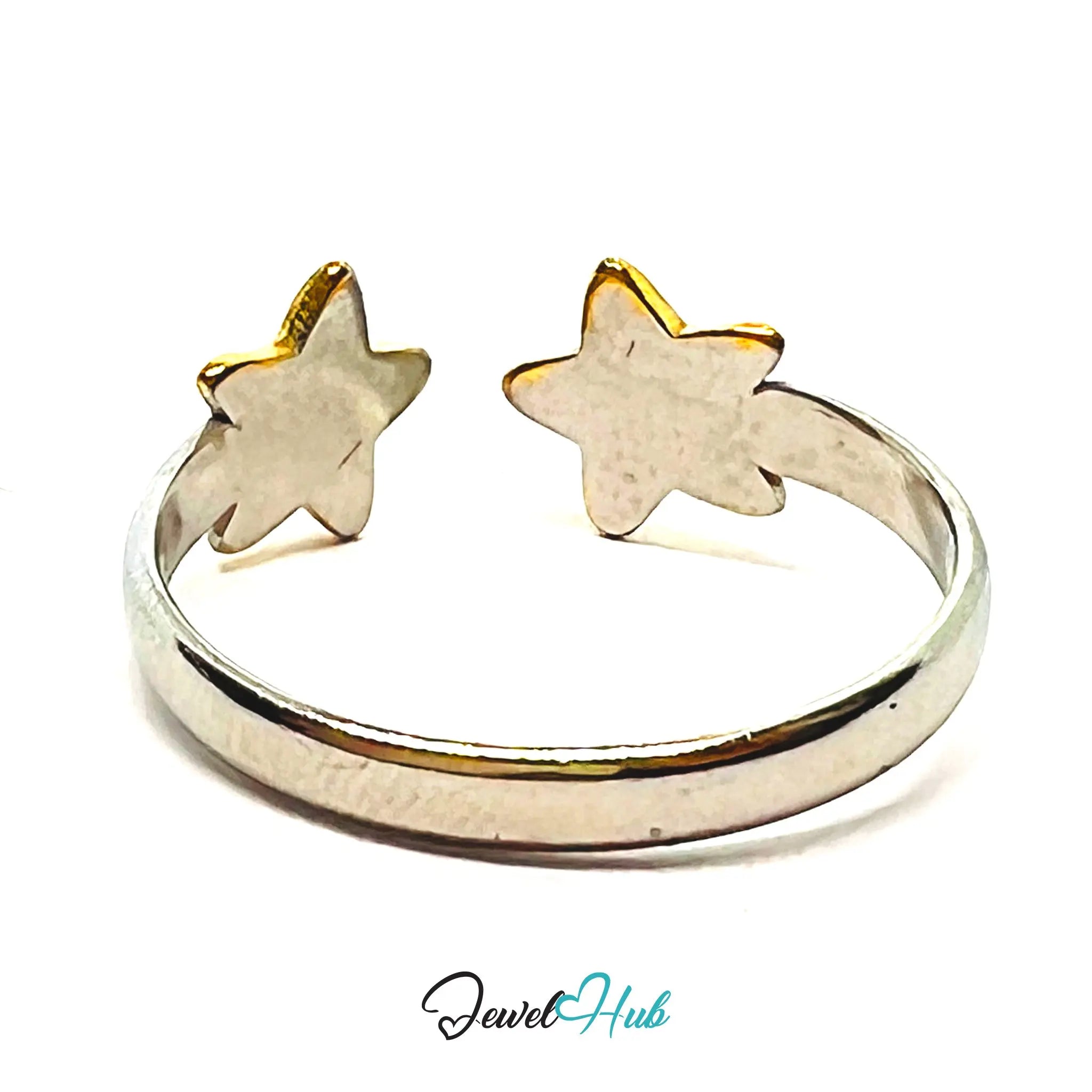 DuoTone DoubleStars Stainless Steel Ring with Adjustable Fit