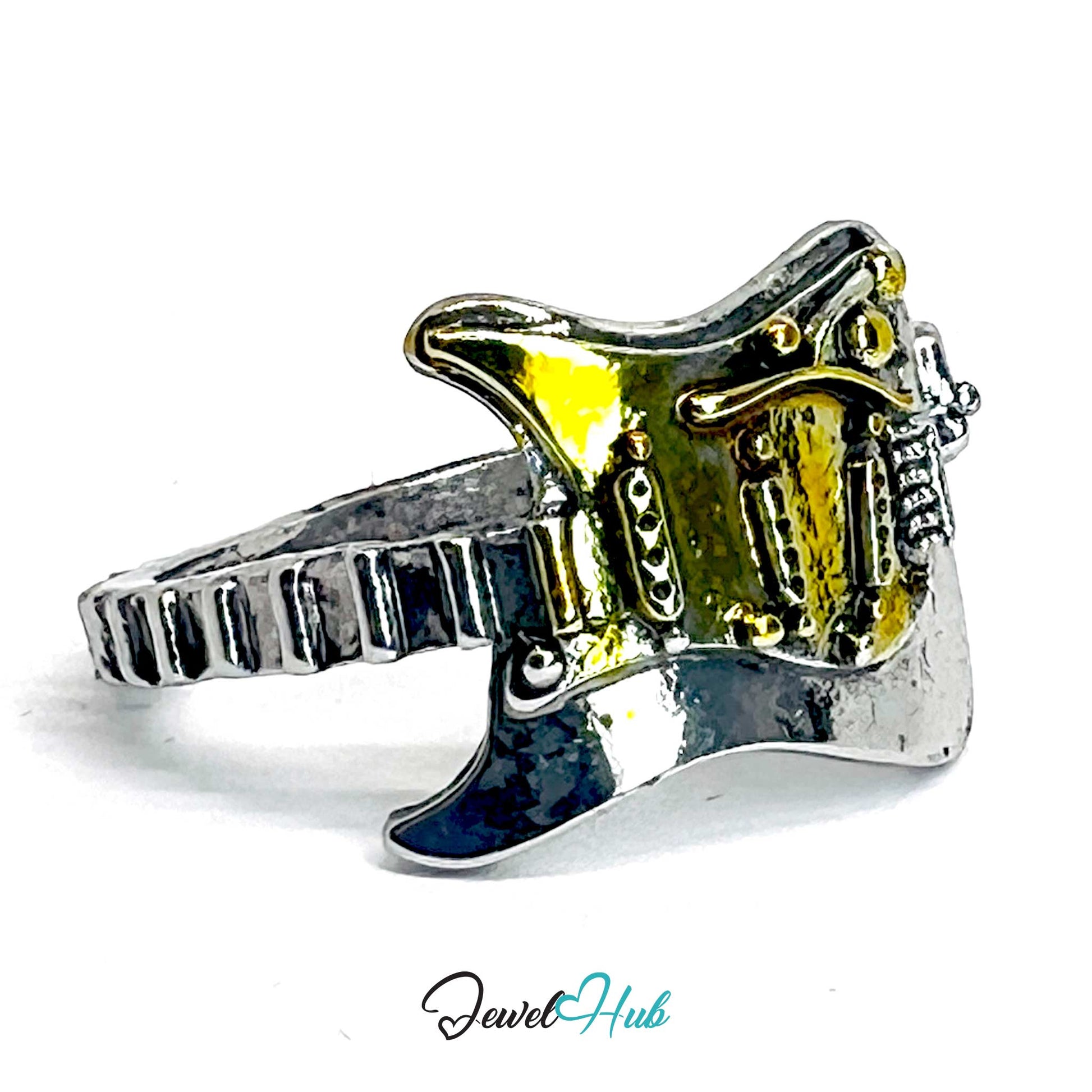 DuoTone Guitar Zinc Alloy Ring – Sculptural Music Symbol