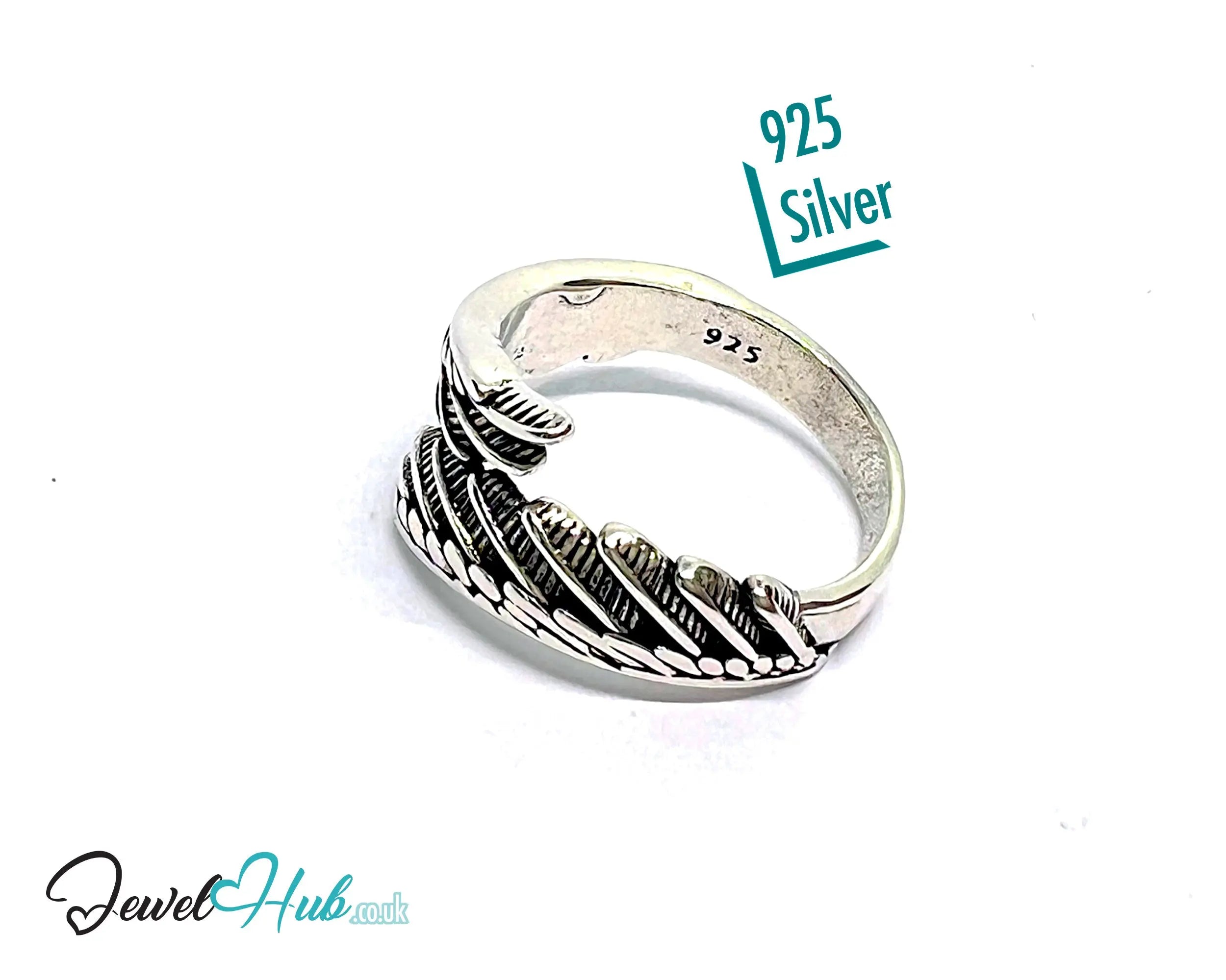 🍃 Material Note: Made from hallmarked 925 sterling silver, this ring offers hypoallergenic comfort, lasting shine, and a lightweight feel. The etched feather texture adds depth and movement, enhancing its organic charm.