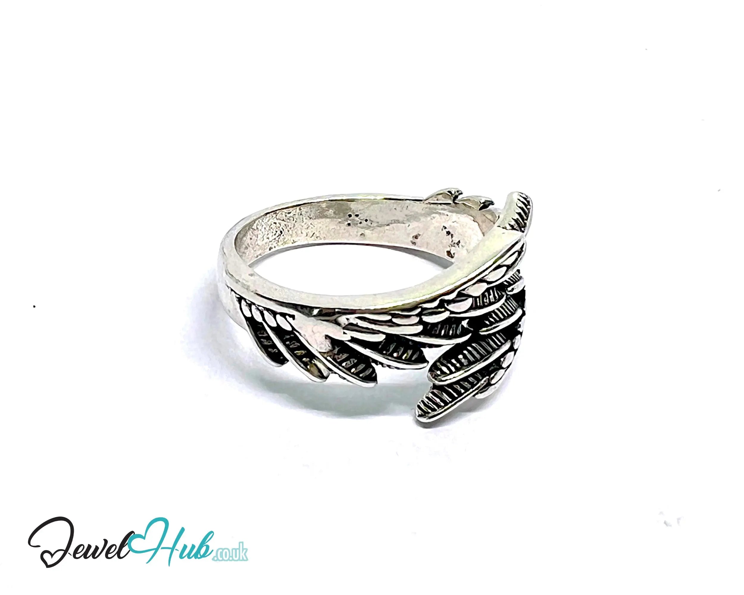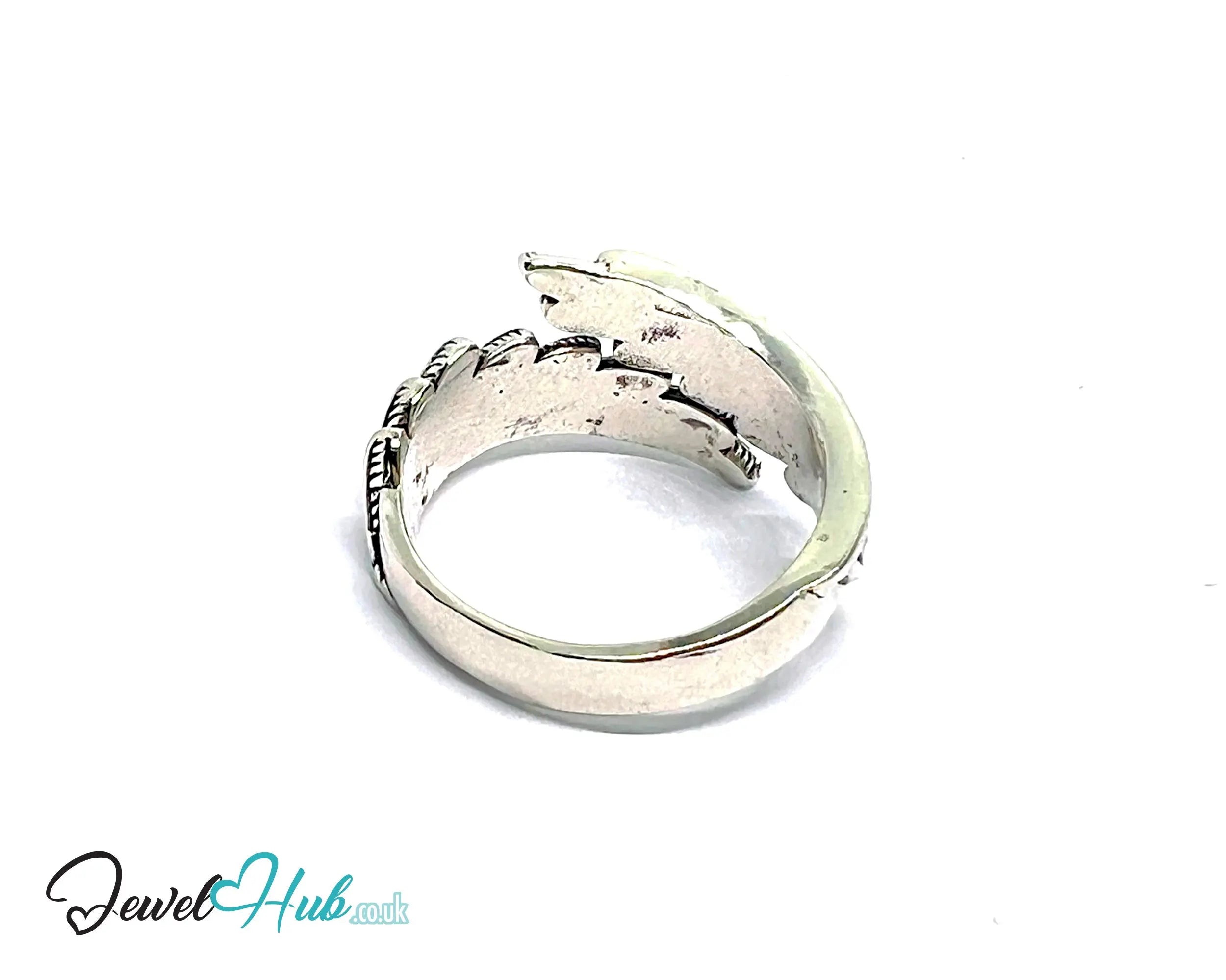 This hallmarked 925 feather silver ring features a delicately sculpted leaf-like silhouette with fine texturing that mimics natural feather barbs. Its open-ended design allows for adjustable sizing across UK O, P, and Q, offering flexibility without compromising style. Weighing just 4.02 grams, it’s a lightweight yet expressive piece—perfect for everyday wear or nature-inspired layering.