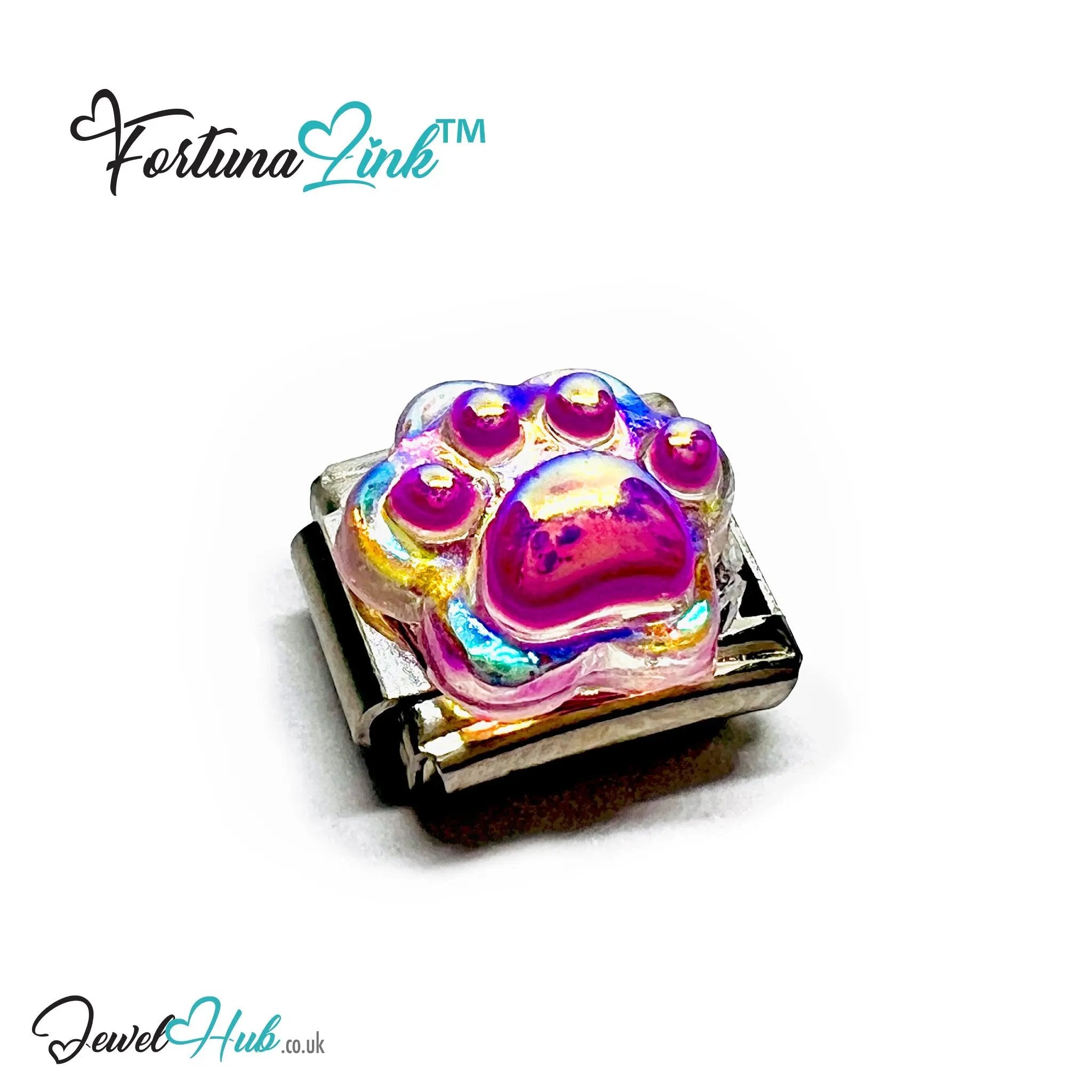 FortunaLink™ Italian Charm Bracelet – Colourful Paw Print Design for Everyday Joy