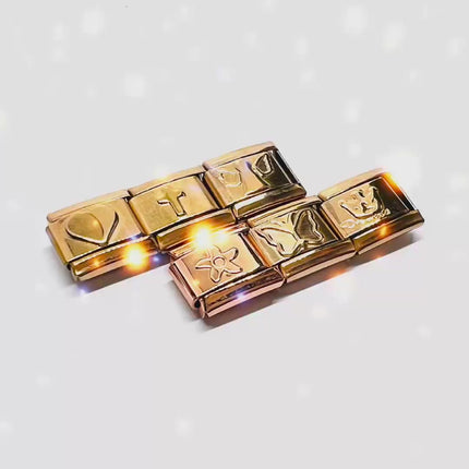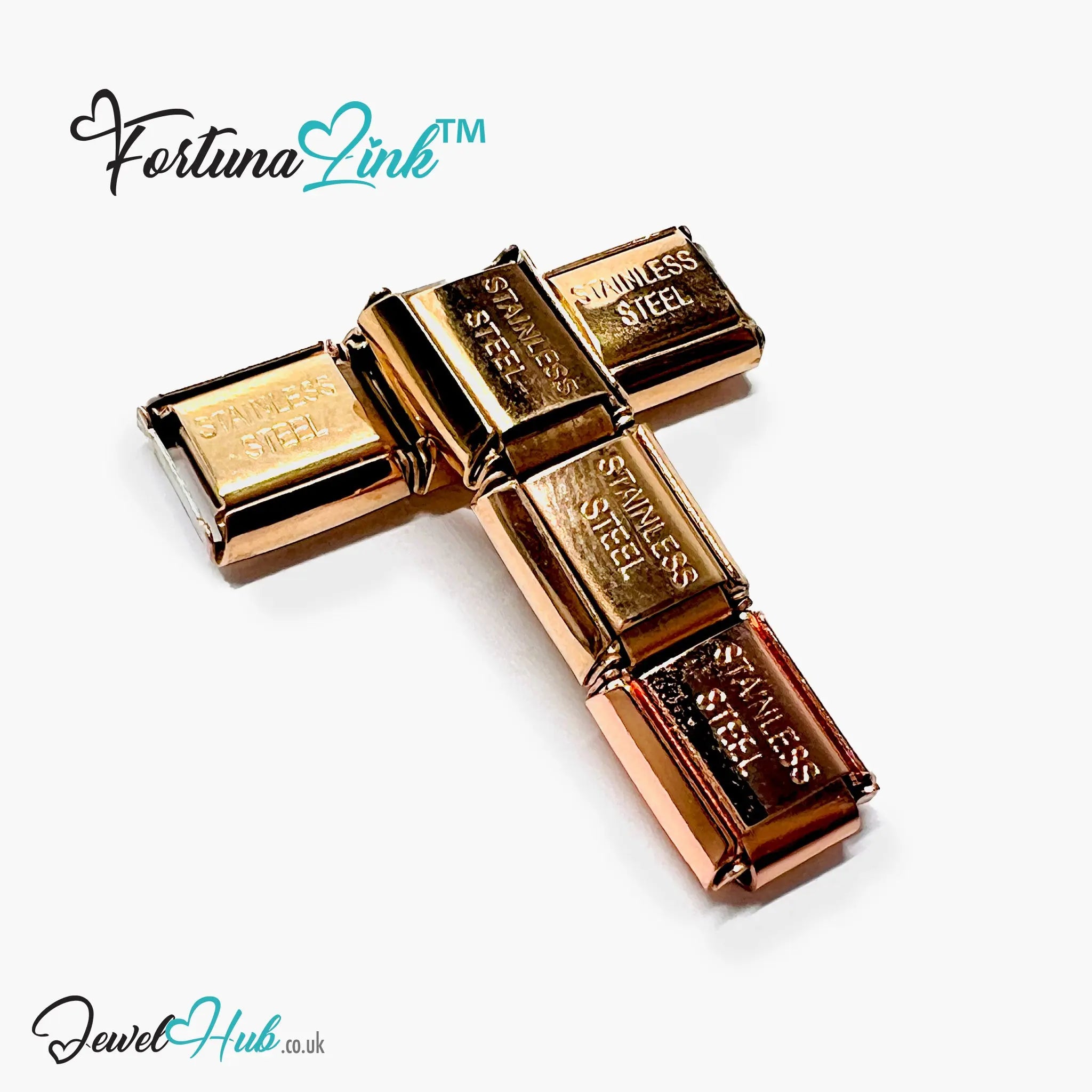 Each FortunaLink™ charm is crafted from high-grade stainless steel with a polished rose gold-tone finish, precision-engraved and hallmarked for authenticity. Measuring 10mm (width) × 9mm (height), these modular links are compatible with standard Italian charm bracelets and designed for expressive layering. Choose from six symbolic styles—Heart, Cross, Angel, Flower, Butterfly, and Crown—each offering a warm, radiant surface and raised detailing that reflects light and meaning. Whether worn solo or stacked with message tiles and colour accents, these charms bring emotional clarity and timeless style to your bracelet.