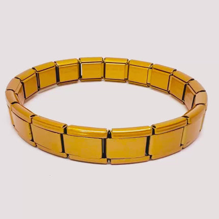 Gold Matte offers a soft, grounded aesthetic that pairs beautifully with earthy tones, pastel tiles, and minimalist charms. It’s ideal for those who prefer understated warmth and tactile texture over high-shine finishes. Whether you're gifting a moment or marking a milestone, this bracelet is built to evolve with you.