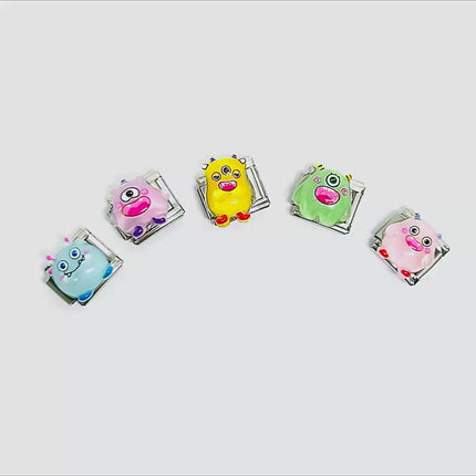 FortunaLink™ Monster Charm Set – Stainless Steel Italian Bracelet Charms | Playful Enamel Monsters