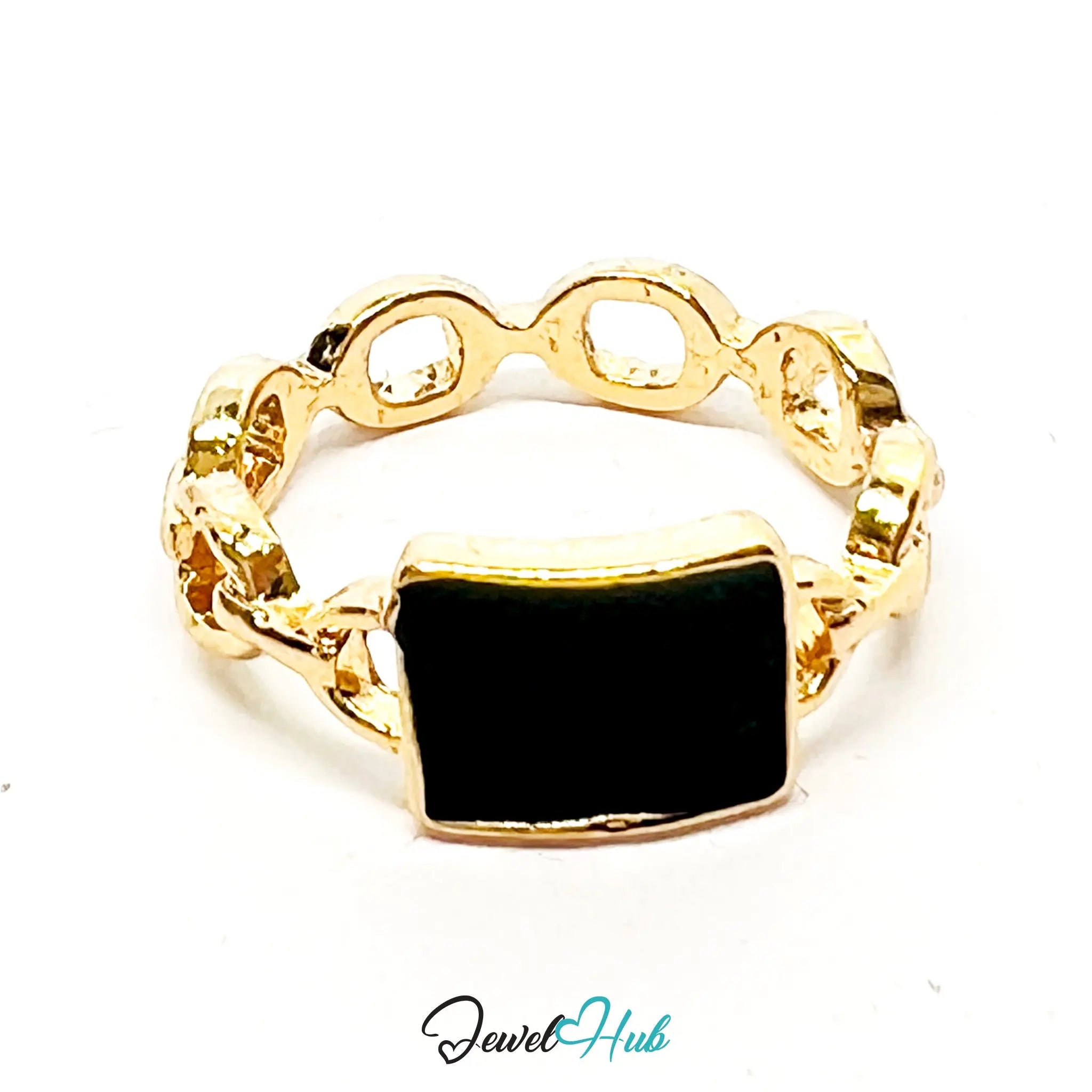 Gold-Plated Chain Ring with Black Resin – Fixed Size Q