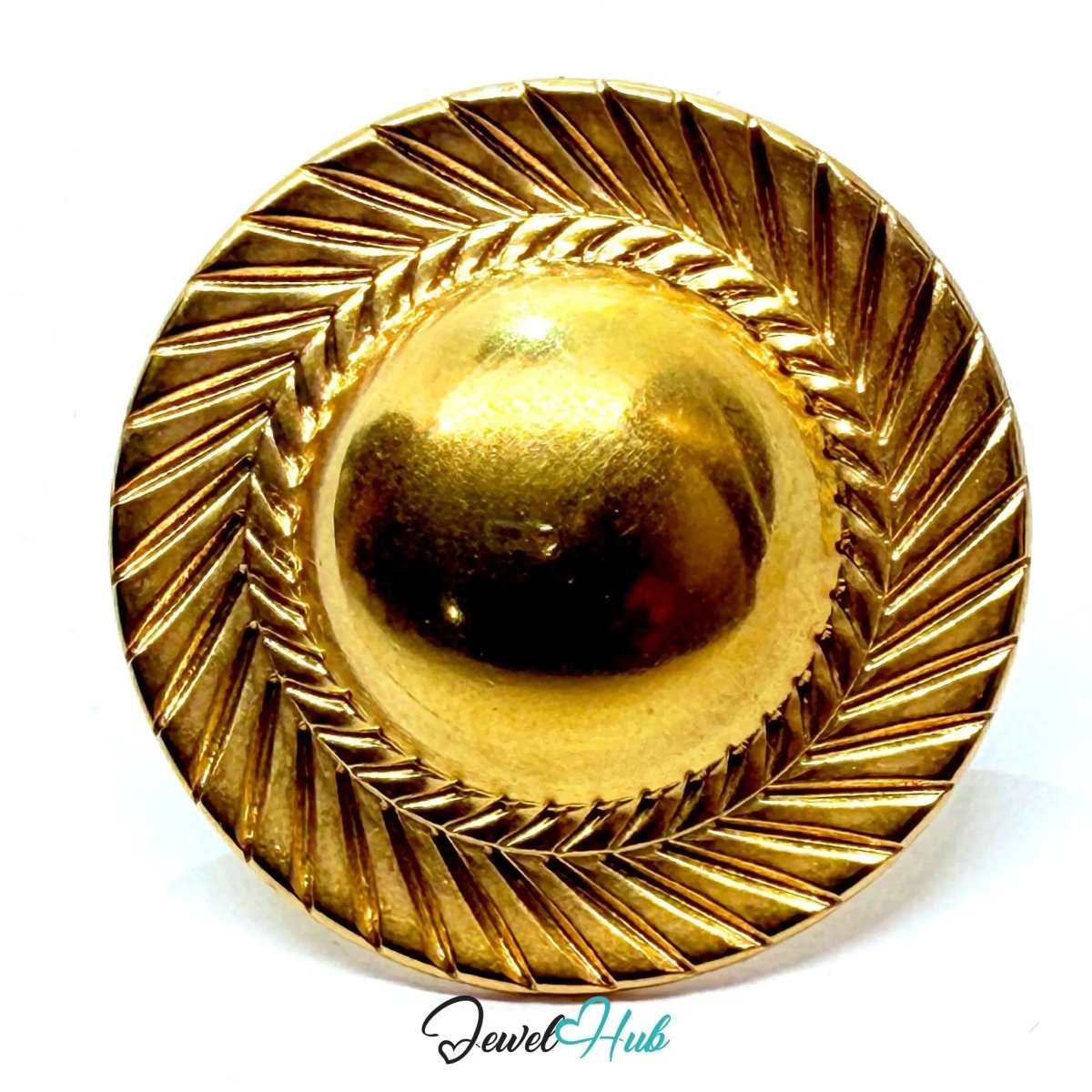 This Gold-Plated Zinc Alloy Ring is a radiant statement piece, featuring a sunburst dome that catches light from every angle. The intricate grooves radiate outward from a polished center, creating a dynamic play of texture and reflection. Designed for those who love jewellery that blends tradition with trend, this ring offers both elegance and edge. Its adjustable sizing from UK J to L ensures a comfortable fit for slender fingers and curated stacks. Dome rings are rising in popularity among Gen Z and fashion-forward stylists — especially those who seek accessories that feel sculptural and intentional. Whether worn solo or paired with minimalist bands, this ring is a pendant for presence, delivering shine and symbolism in one bold gesture.