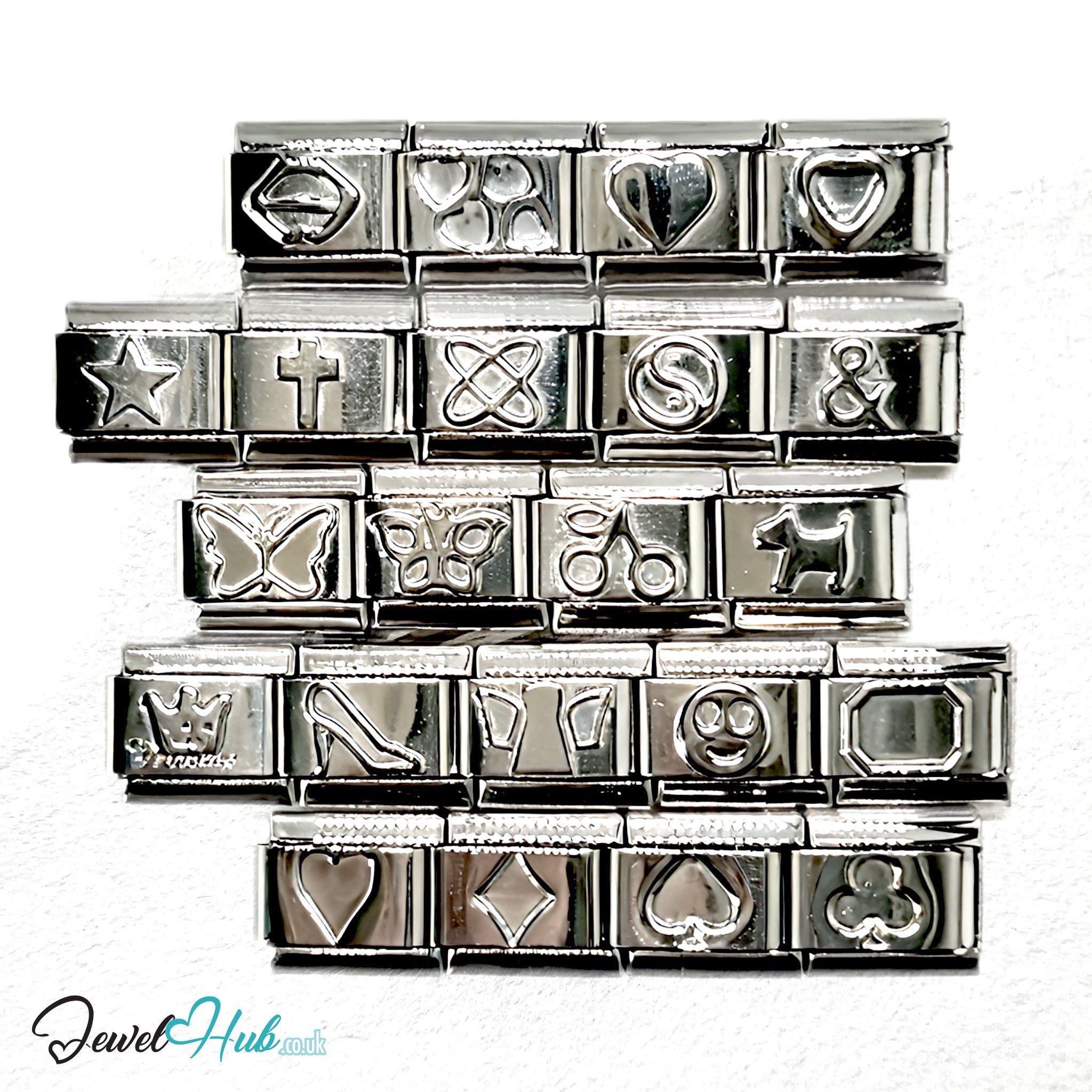 Celebrate personal style with FortunaLink™—a modular charm link crafted from polished silver-tone stainless steel, designed to fit standard Italian charm bracelets. Measuring 10mm wide × 8.8mm high, each charm offers hypoallergenic comfort and tarnish-resistant durability, perfect for everyday wear. Whether you're expressing love, luck, hobbies, or personality, FortunaLink™ charms bring symbolic meaning to your wrist with timeless elegance.