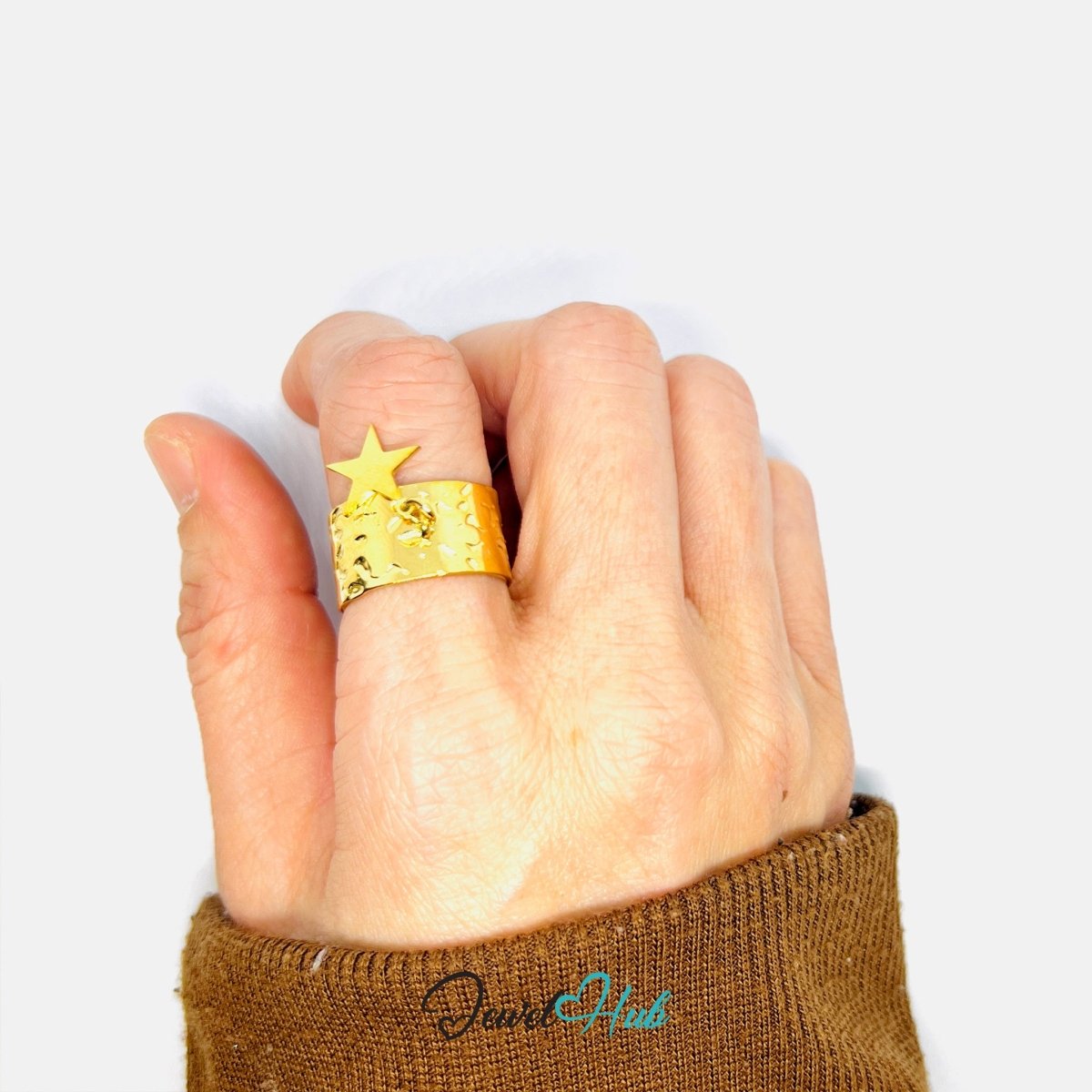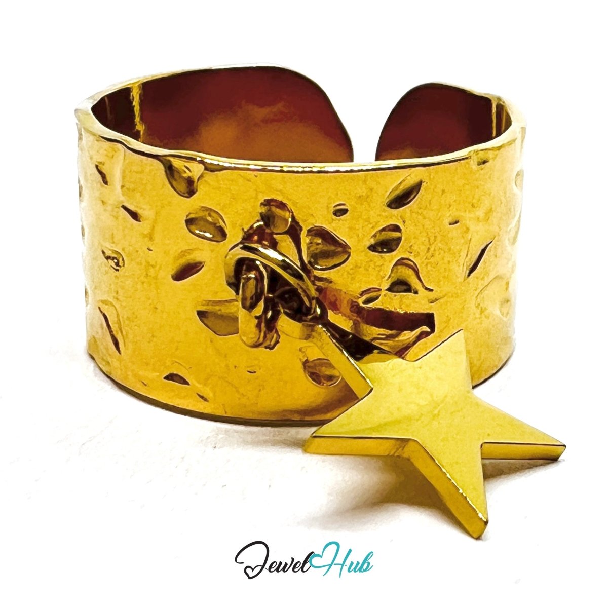 MiniCharm Ring – Gold-Toned 304 Stainless Steel with Big Star Charm