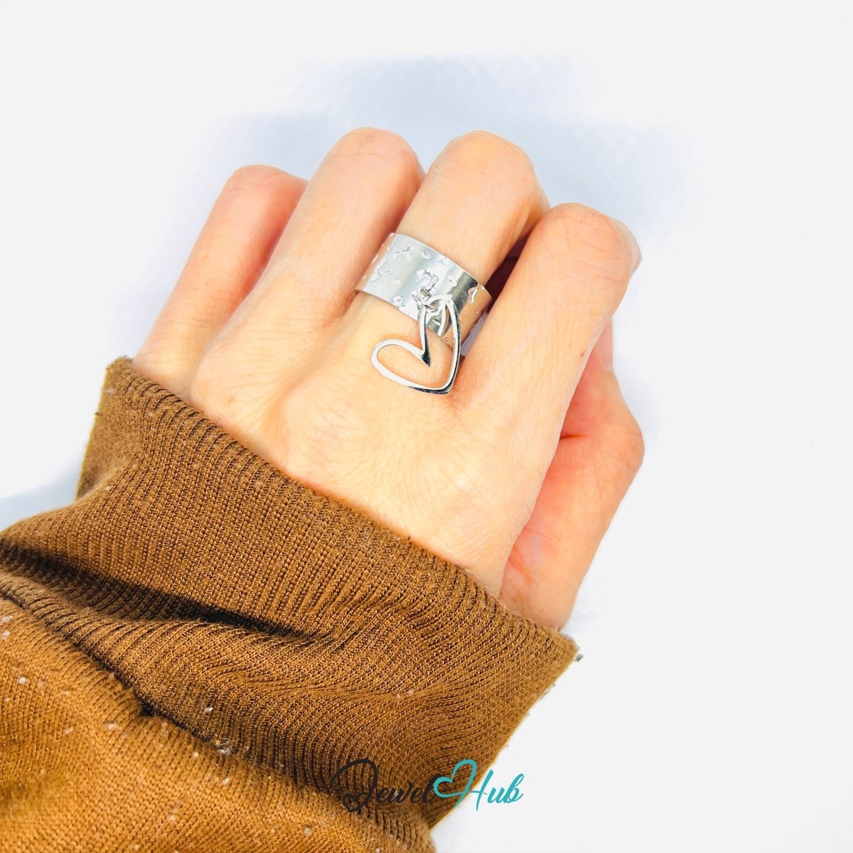 MiniCharm Ring – Silver-Toned 304 Stainless Steel with Sculptural Heart Charm