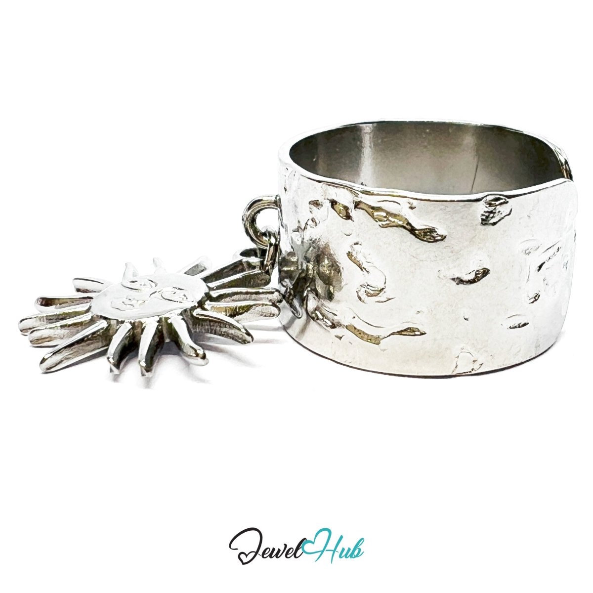 MiniCharm Ring – Silver-Toned 304 Stainless Steel with Sculptural Sun Charm