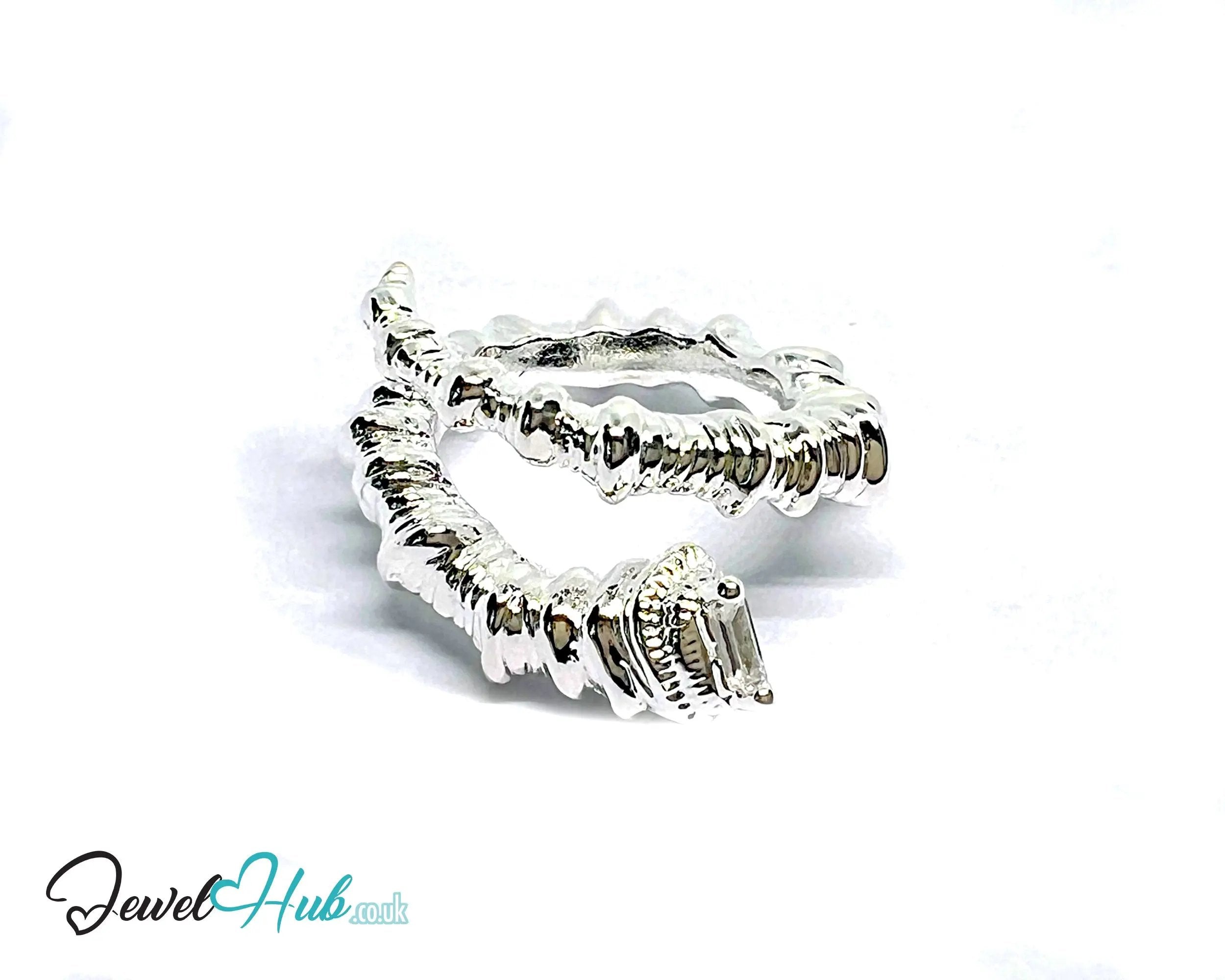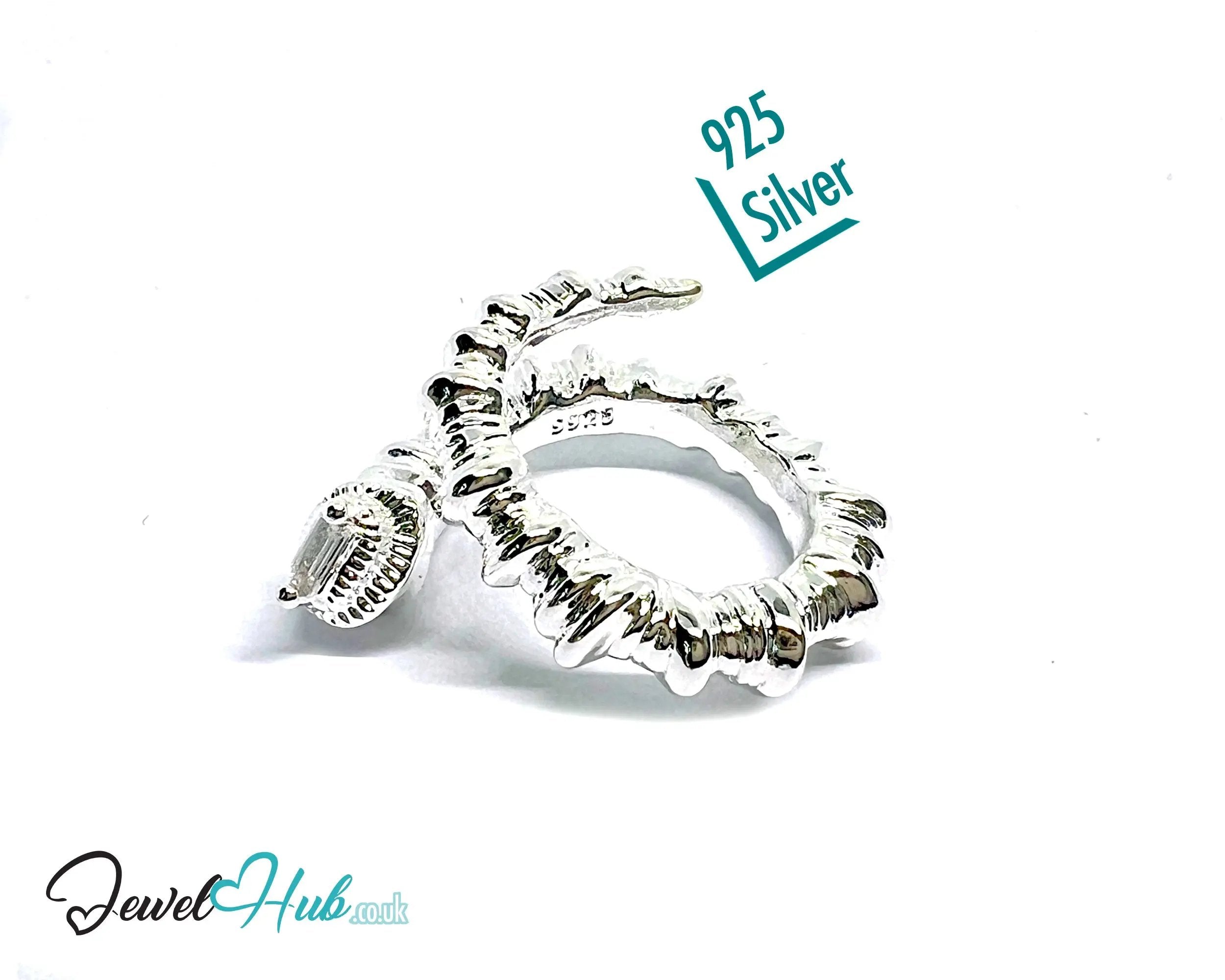 This Serpent Sterling Silver Ring is made from fully hallmarked 925 silver and weighs 10.6 grams. Its coiled body wraps around the finger with sculptural depth and a polished finish, while the open-ended band adjusts across UK sizes M, N, and O. A silver ring that blends statement styling with tactile craftsmanship.