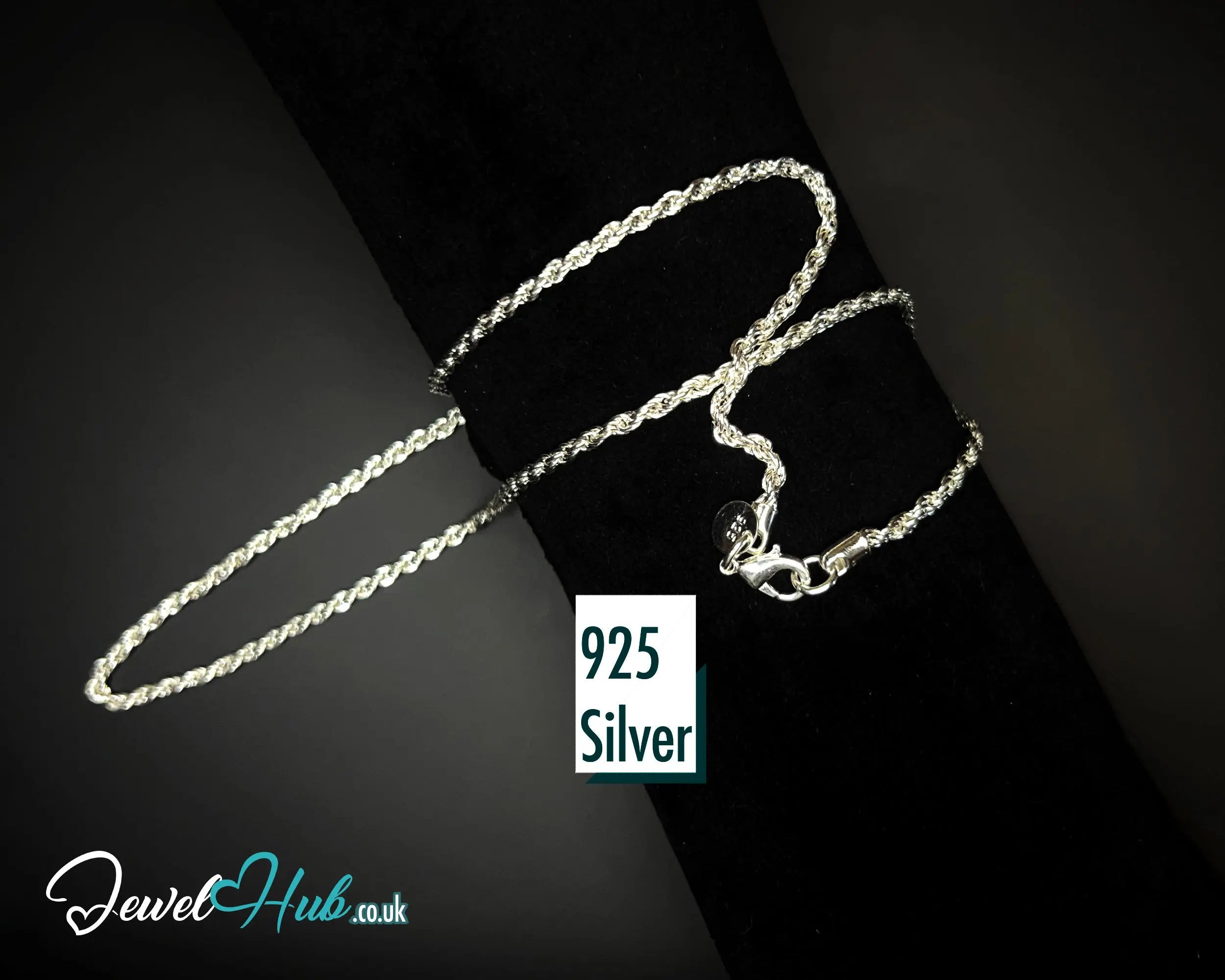 925 Sterling Silver Necklace (Rope Chain) 2mm | Hallmarked Elegance