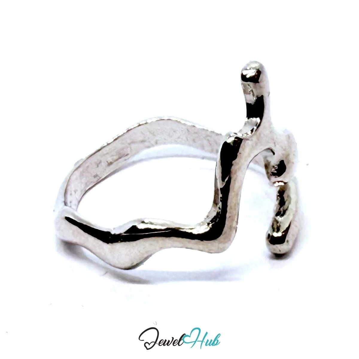 Silver-Plated Abstract Waveform Zinc Ring with Sculptural Crest – Artistic Minimalism for Gen Z Stylists