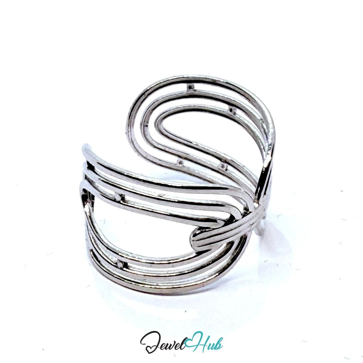 Silver-Plated Interwoven Loop Zinc Ring – Sculptural Openwork Accent with Adjustable Fit (UK O–Q)