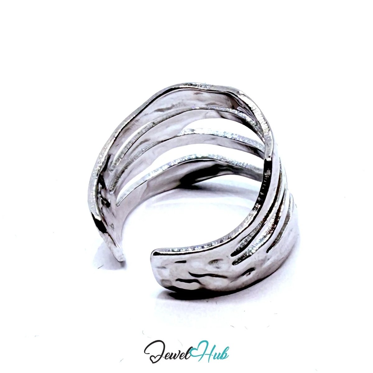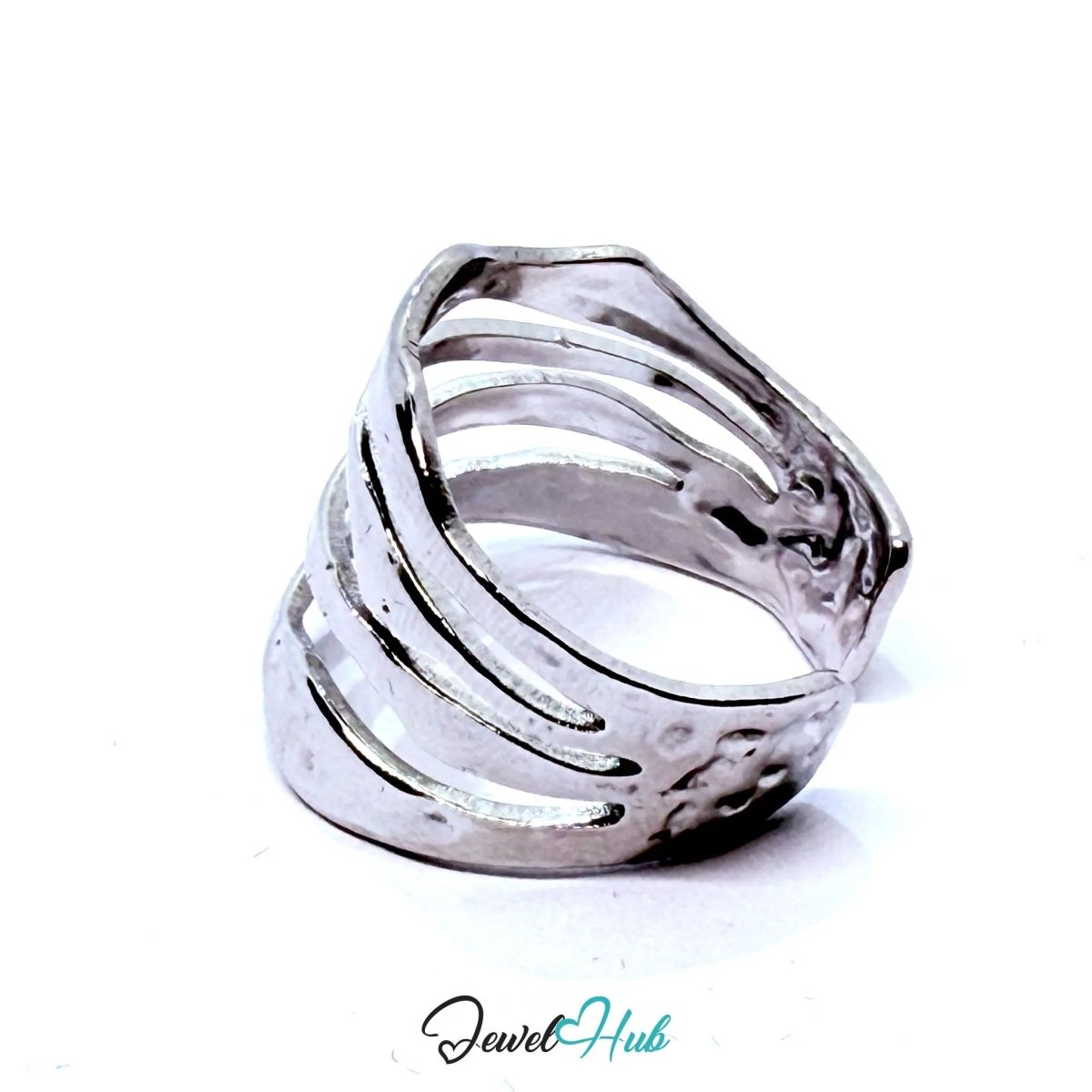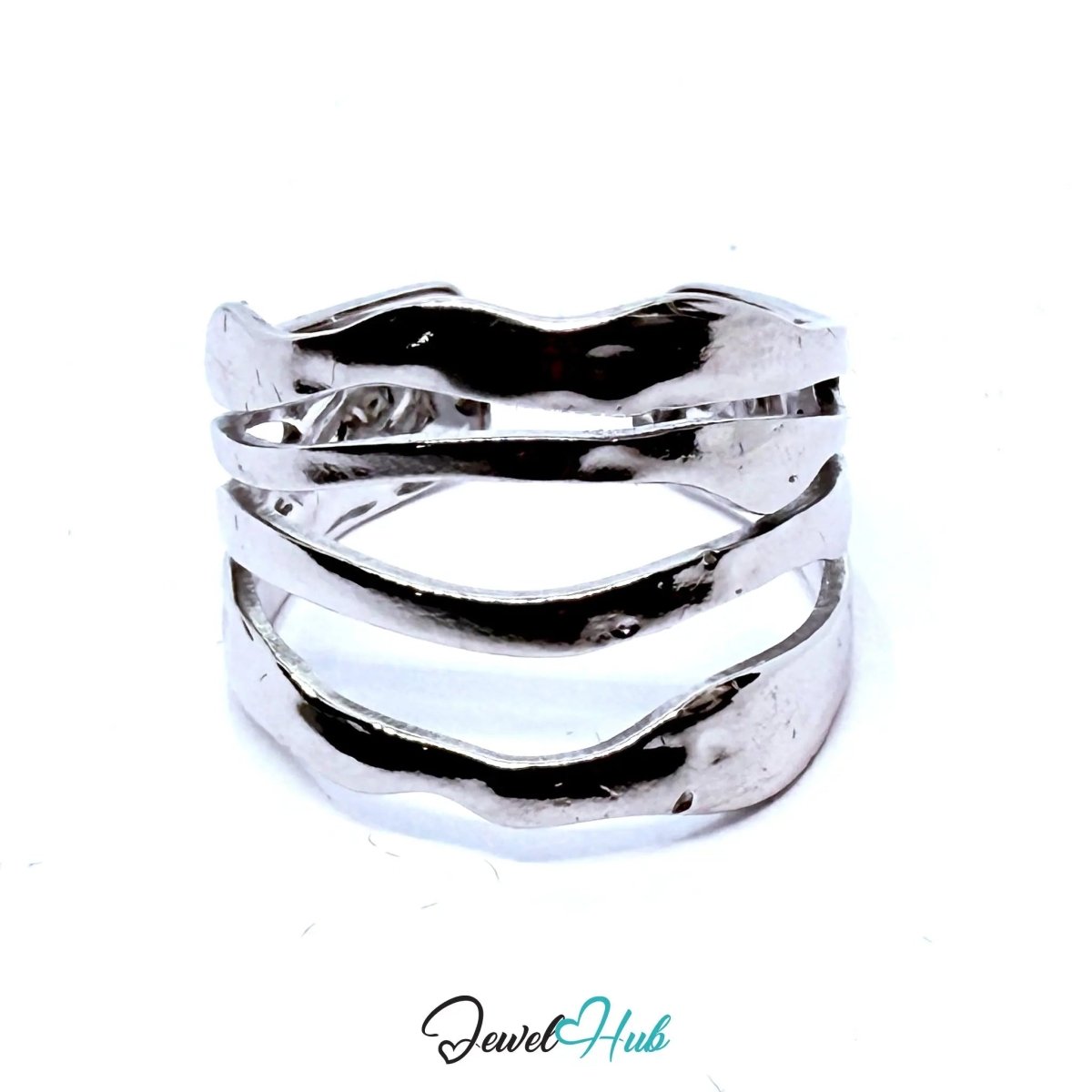 Silver-Plated Layered Wave Ring – Adjustable Size M–O | Sculptural Minimalism for Fluid Styling