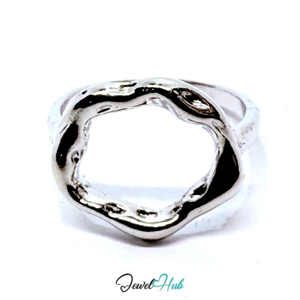Silver-Plated Organic Circle Zinc Alloy Ring – Fixed Sizes M, N, O | Sculptural Minimalism for Artisan Edits