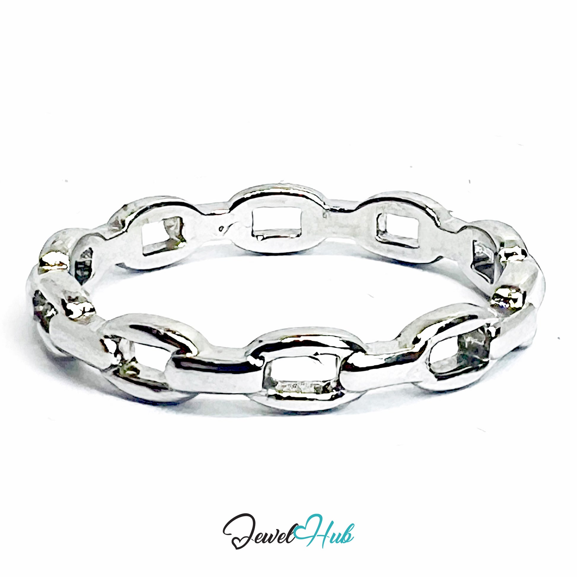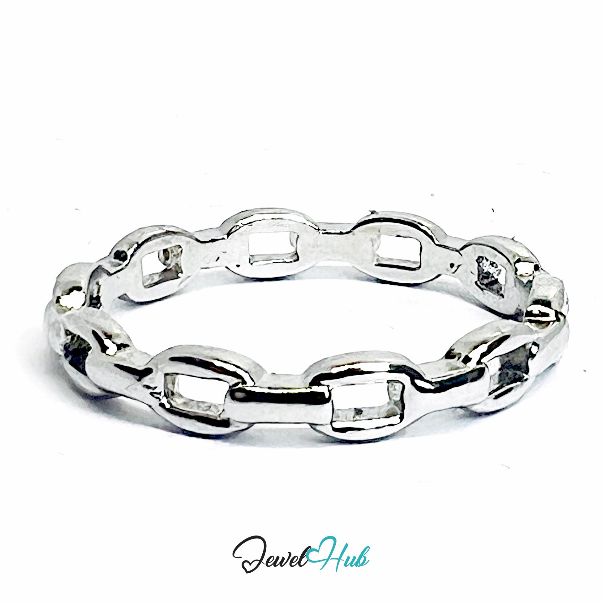 Silver-Plated Zinc Alloy Linked Ring – Miniature Fluid Sculptural Design