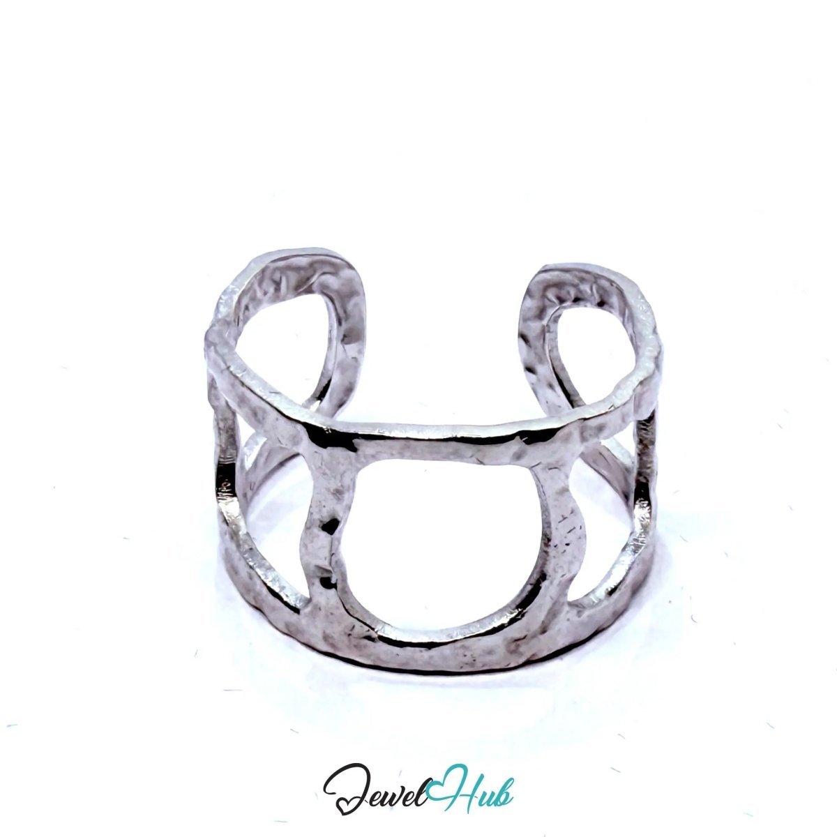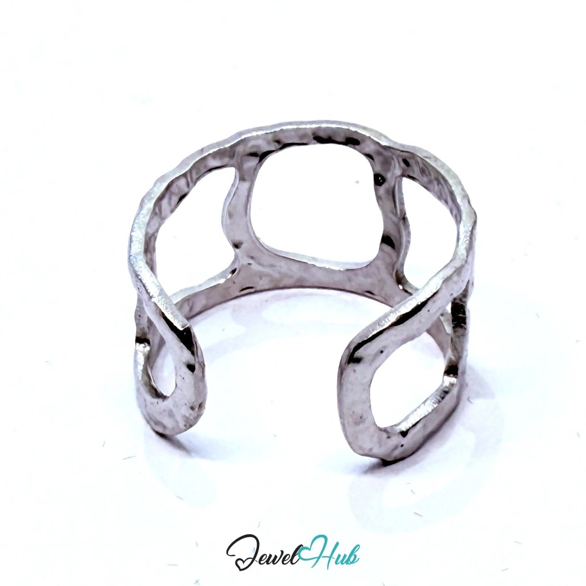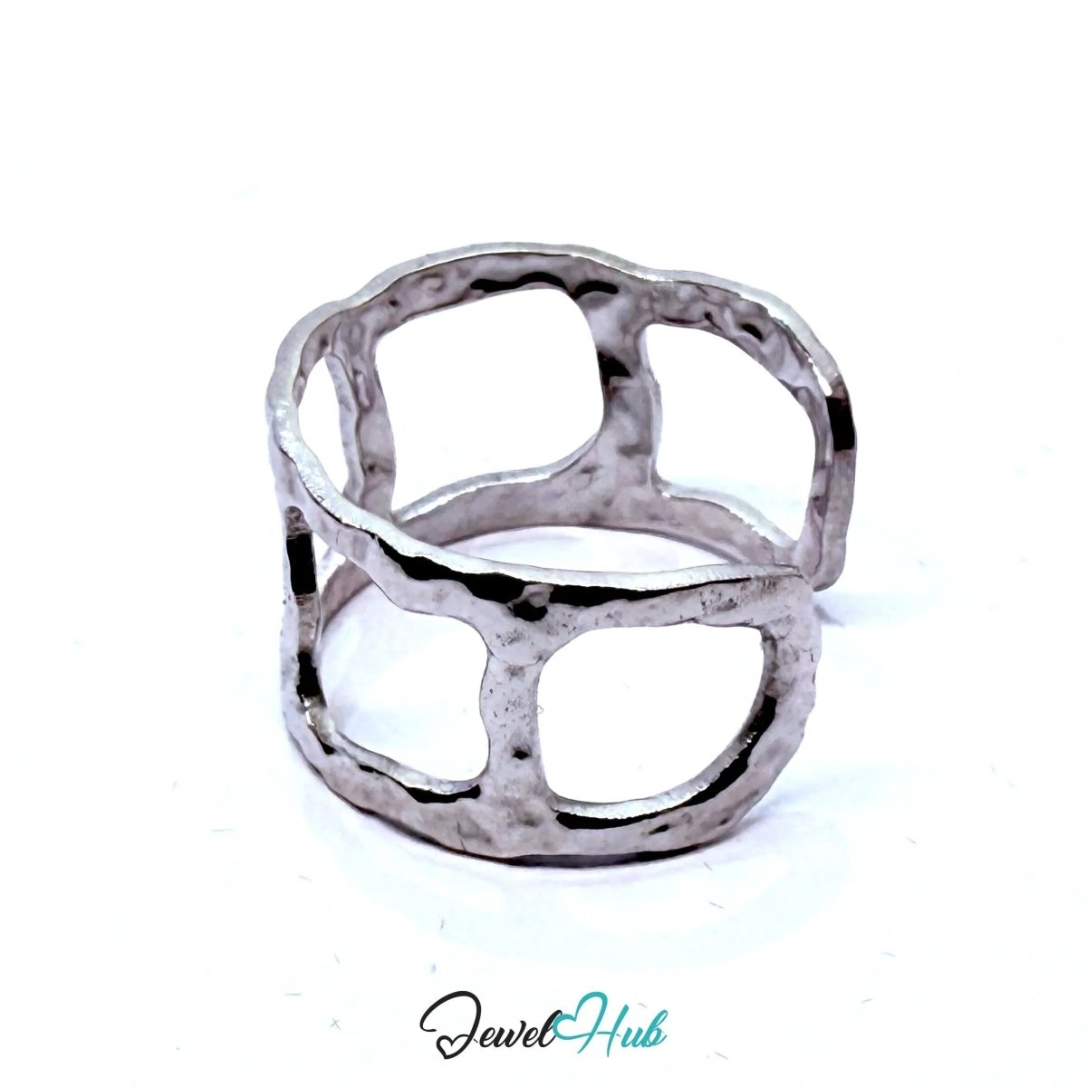 Stainless Steel Geometric Cut‑Out Charm Ring – Artisan Texture, Sculptural Form (UK N–P)