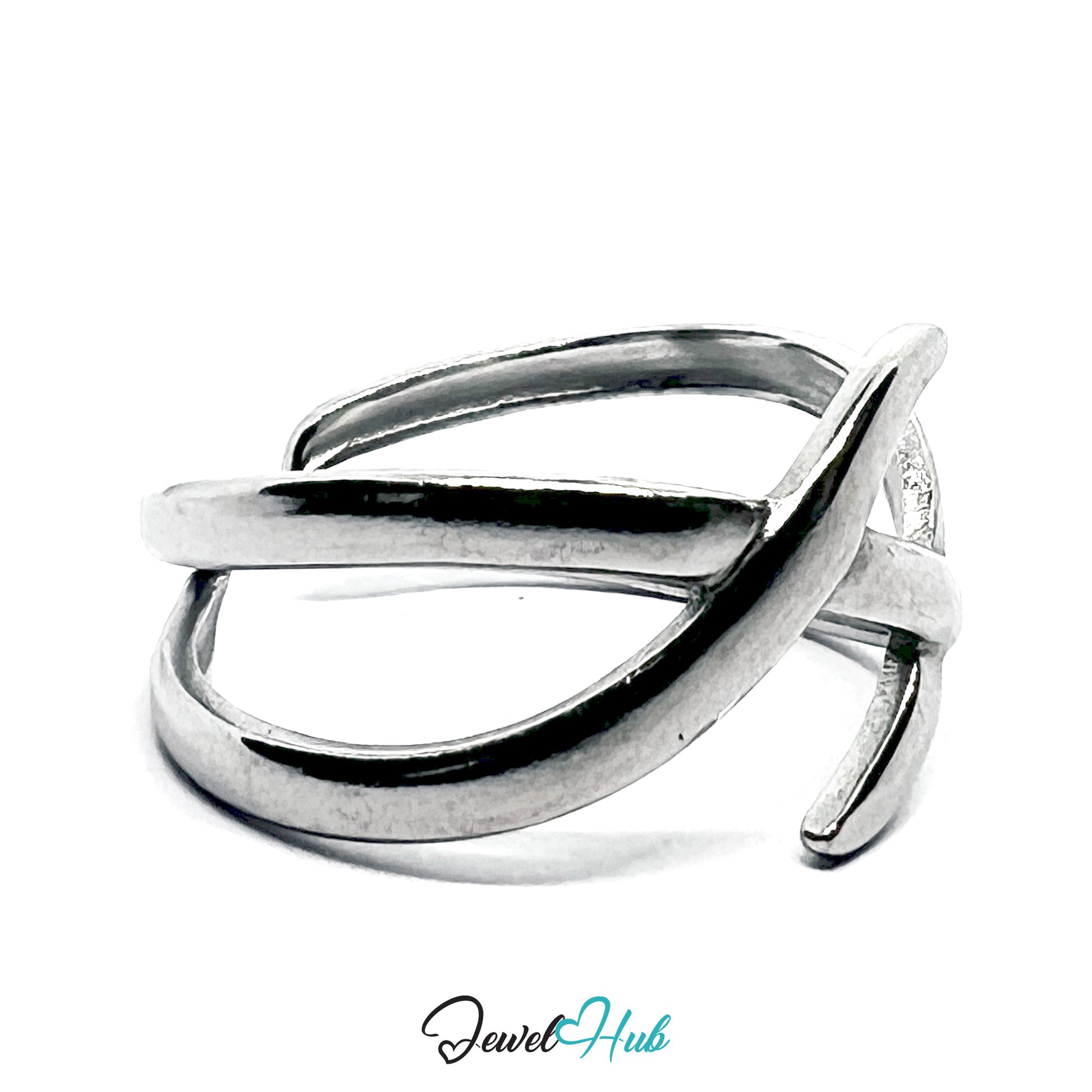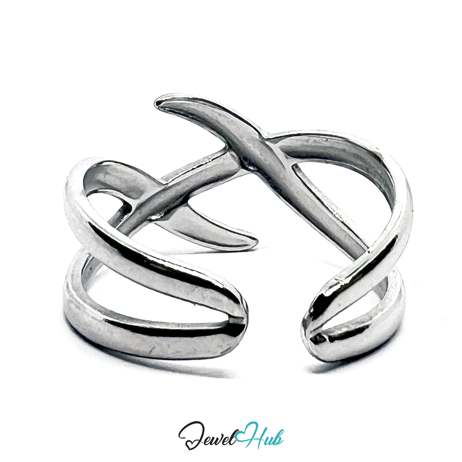 Stainless Steel Silver Crisscross Ring – Modern Open-End Design