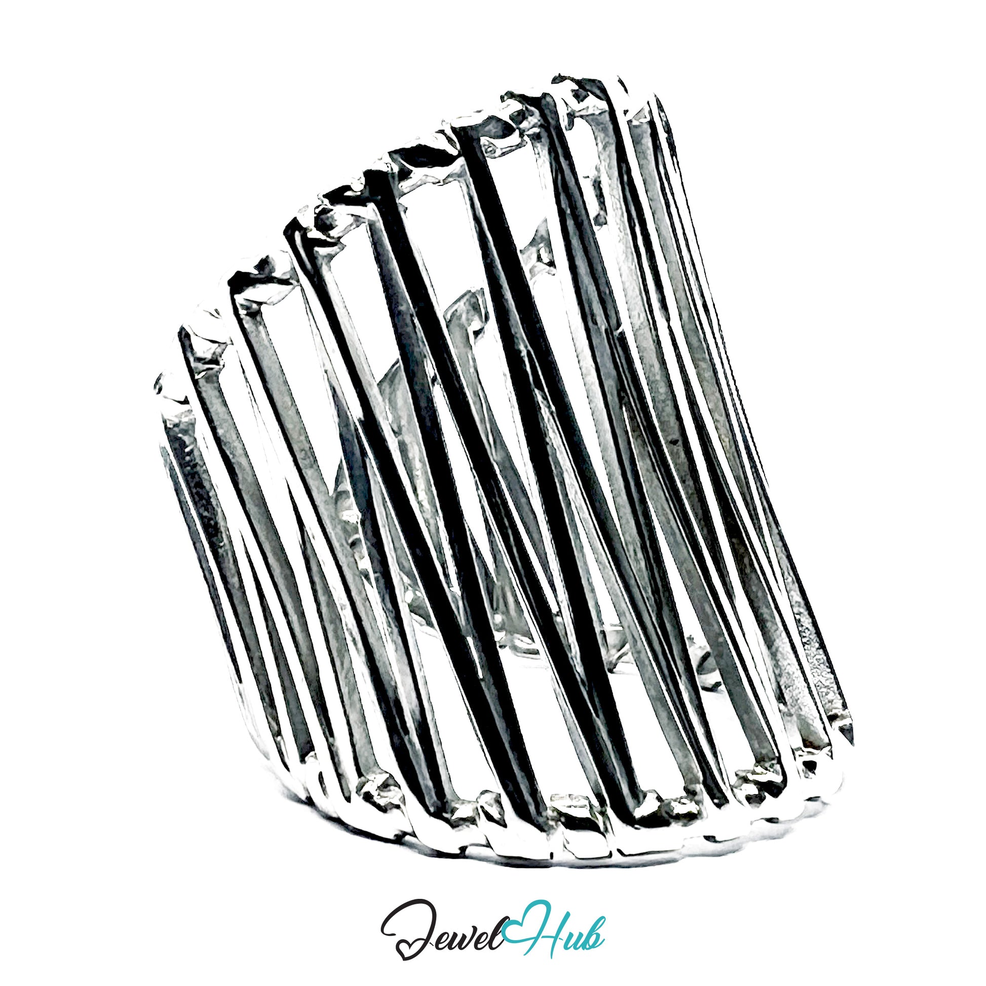 Stainless Steel Silver Vertical Cage Statement Ring – Sculptural