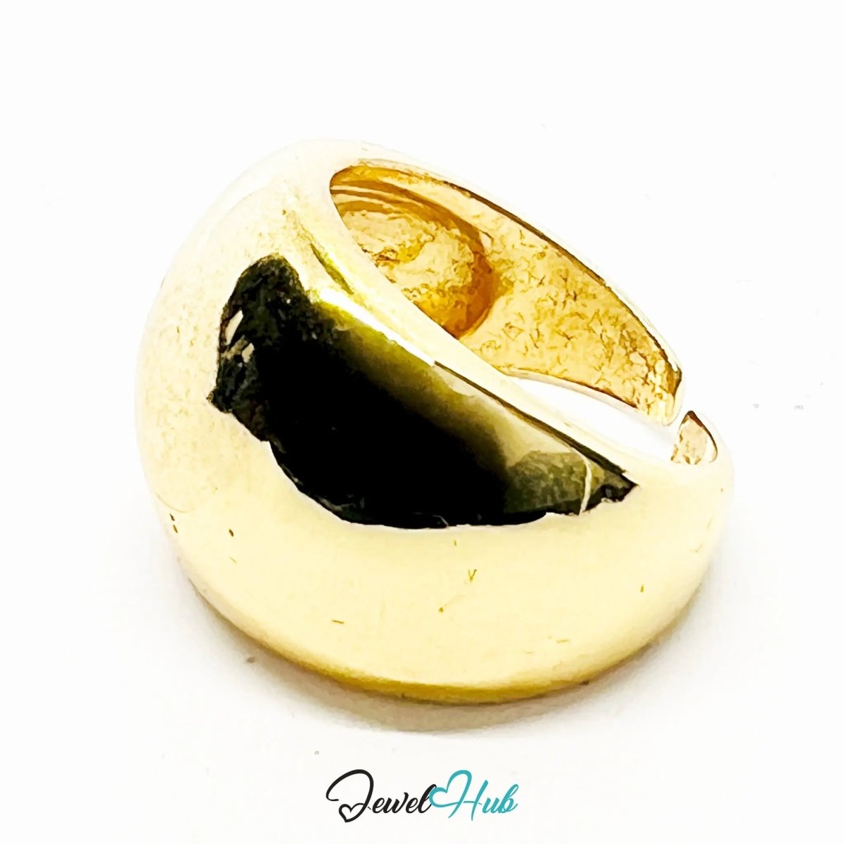 • Material: Zinc Alloy, Gold-Plated • Weight: 7.85g (Size P) or 9.38g (Size Q) • Size P: UK P / US 8 / EU 57 / ⌀ 18.1 mm / Cir. 57 mm • Size Q: UK Q / US 8.5 / EU 58 / ⌀ 18.5 mm / Cir. 58 mm • Sculptural dome design with high-polish finish for bold visual impact • Best gift for fashion-forward personalities who love statement jewellery